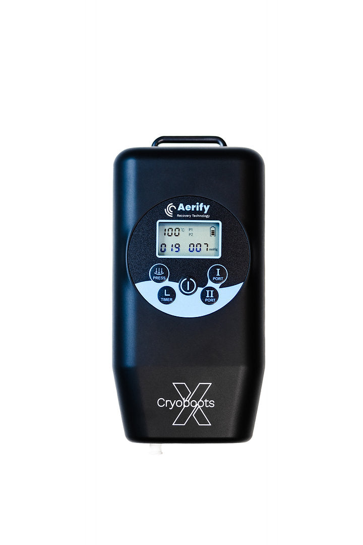 Apresentando o novo e portátil Aerify Cryoboots X Cryo-Compression System, projetado para melhorar a recuperação e o desempenho.