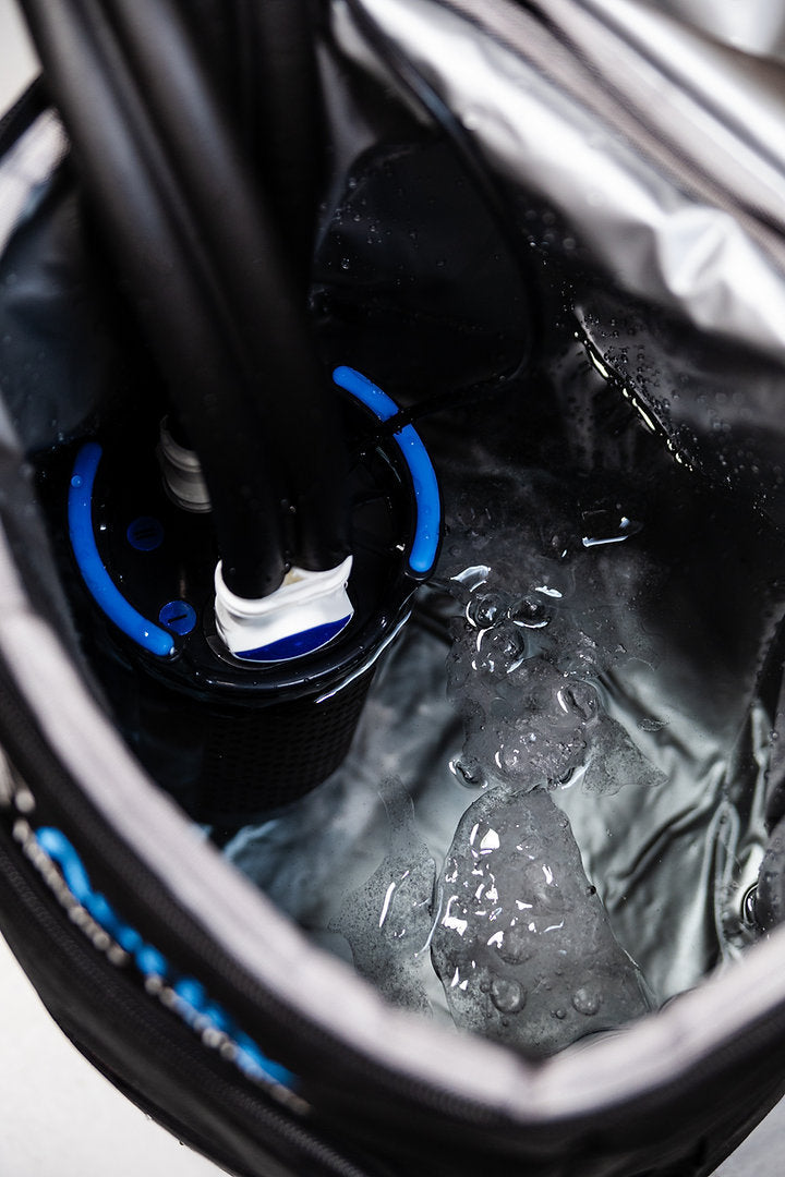 Agora com uma bateria integrada, bomba de ar elétrica e mochila isolada e à prova d'água para ser usada como uma caixa de gelo!