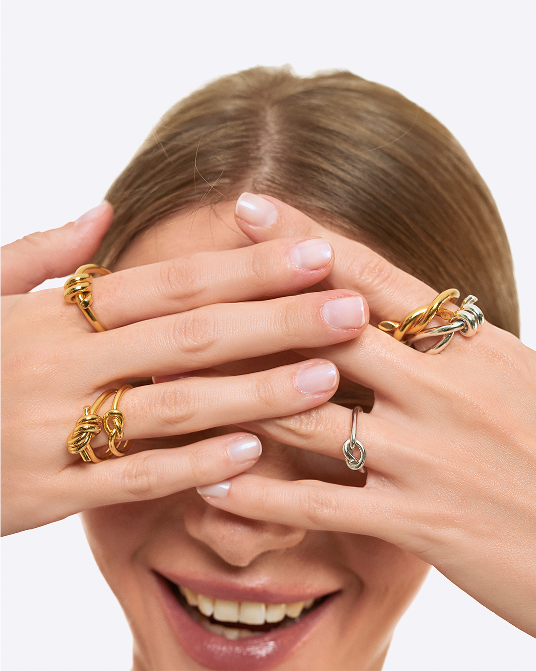 Anel ajustável em prata e banho de ouro ou ródio com nó