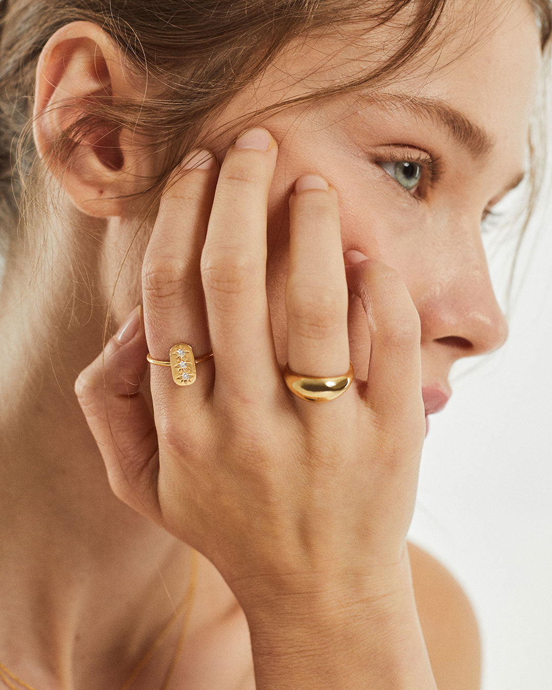 Anel ajustável em prata 925 com banho de ouro 18K