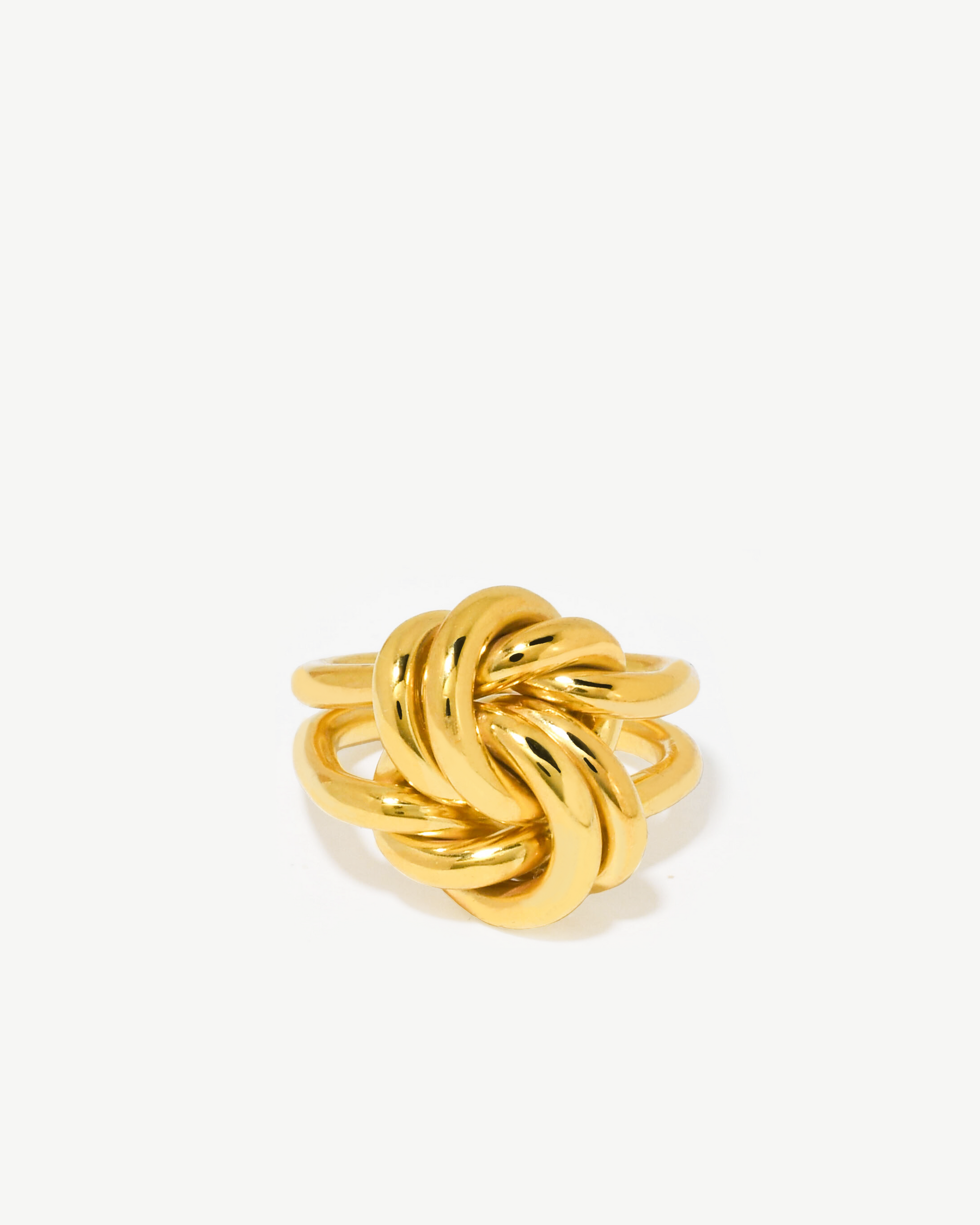 Anel com detalhe de nó feito à mão em prata 925 com banho de ouro 18K.