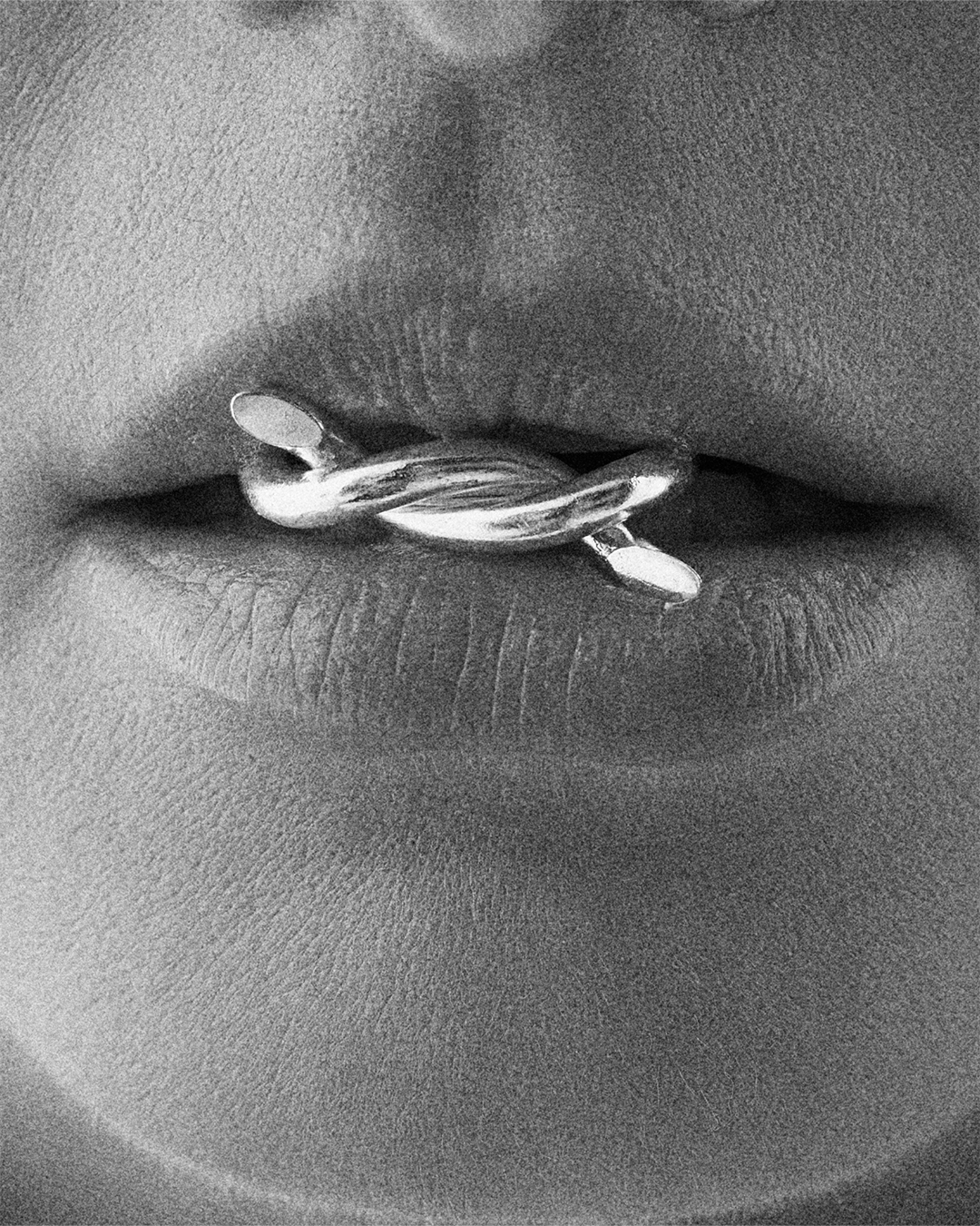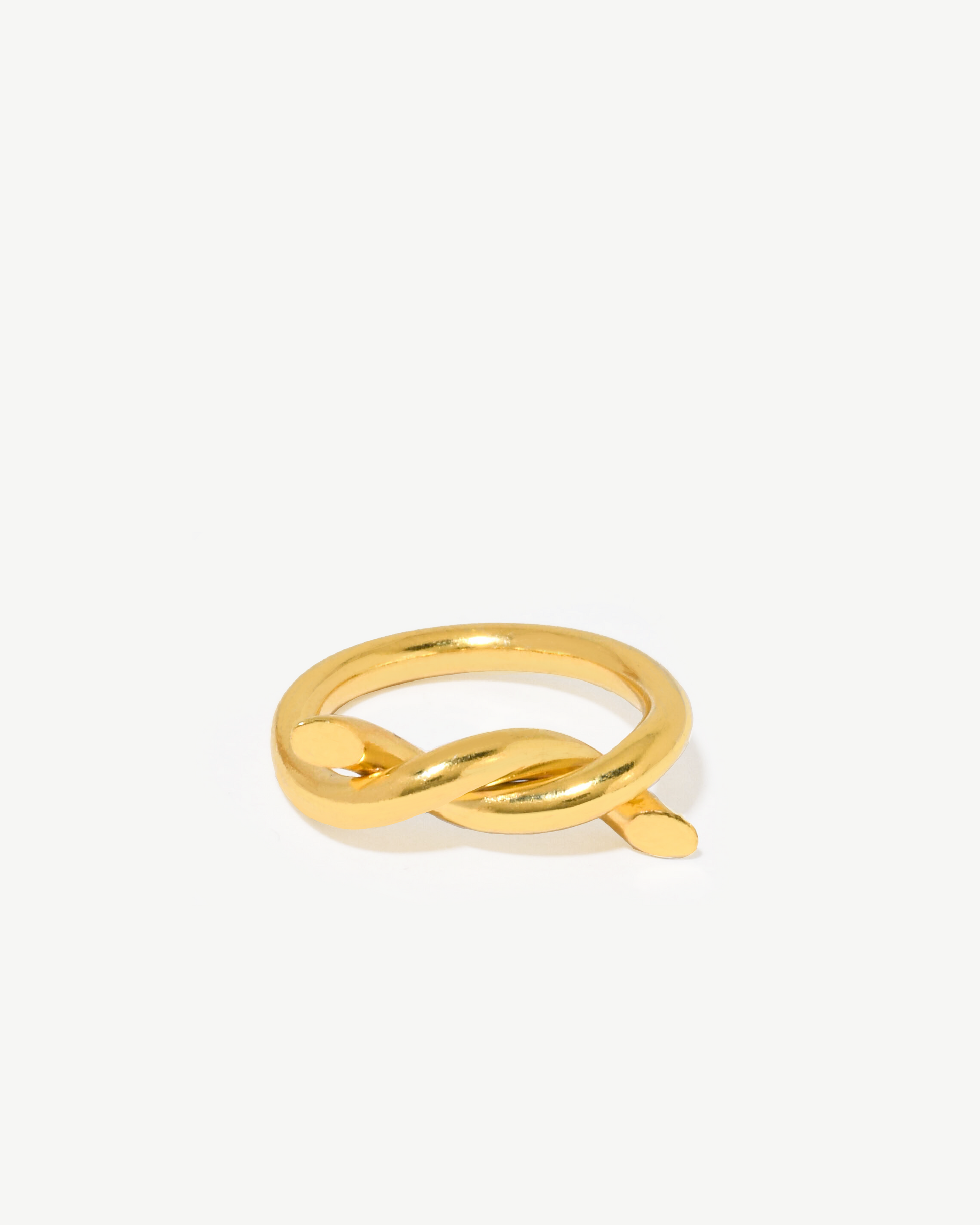 Anel com detalhe de nó feito à mão em prata 925 com banho de ouro 18K.