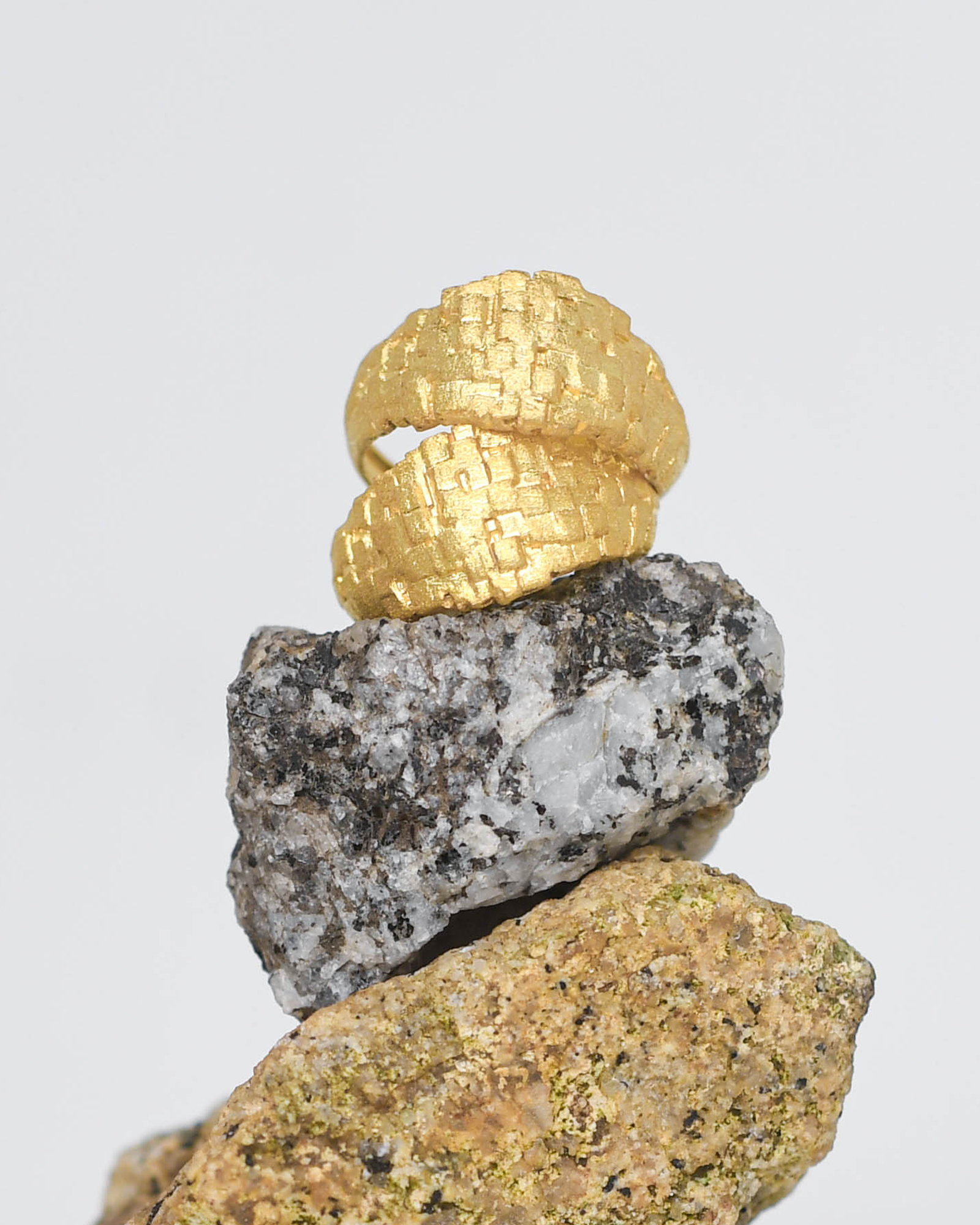 Anel tridimensionais em prata 925 com banho de ouro 18K.