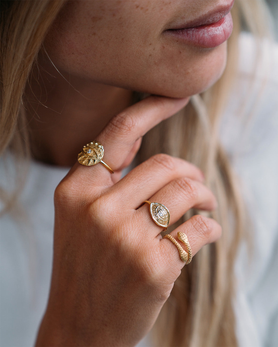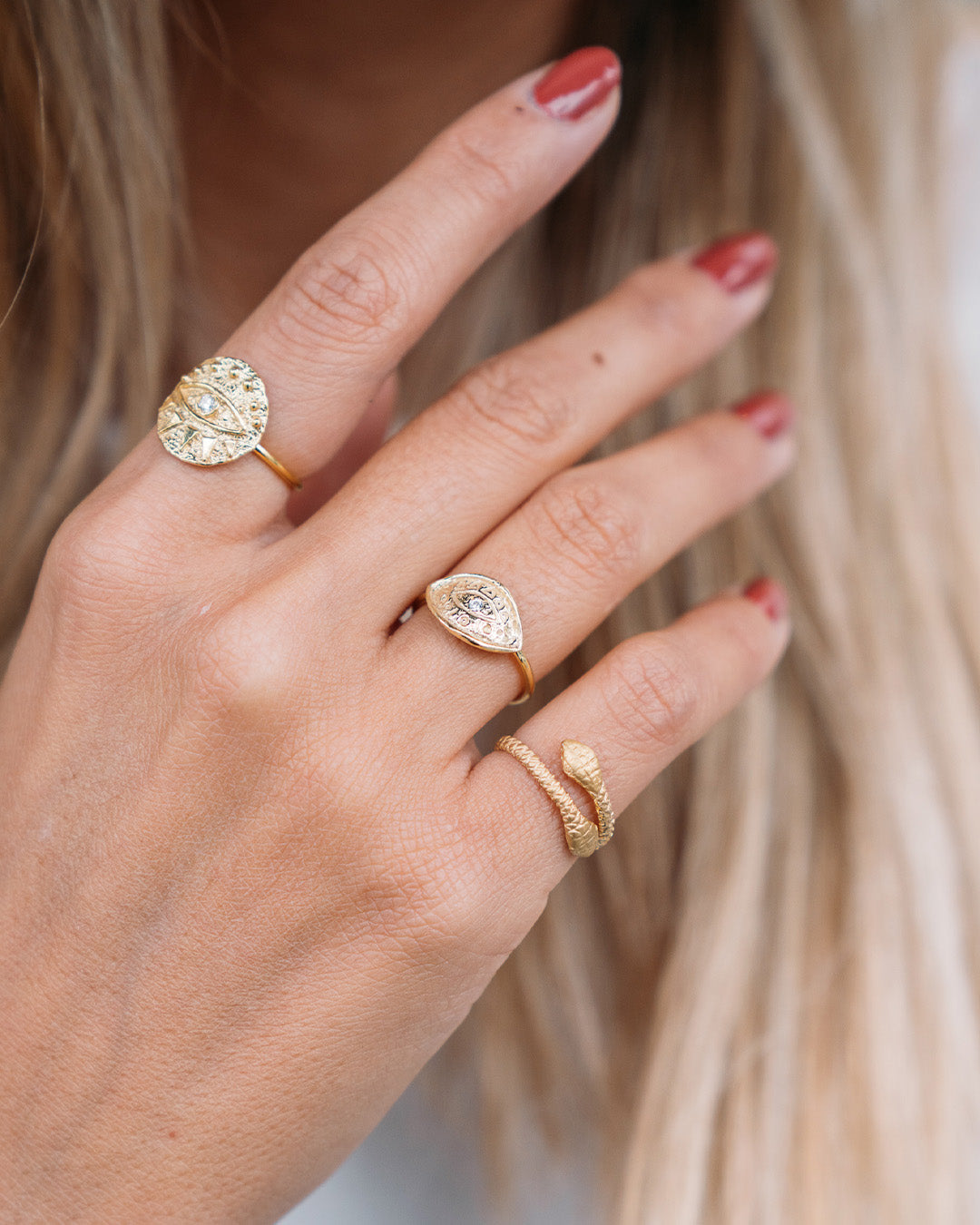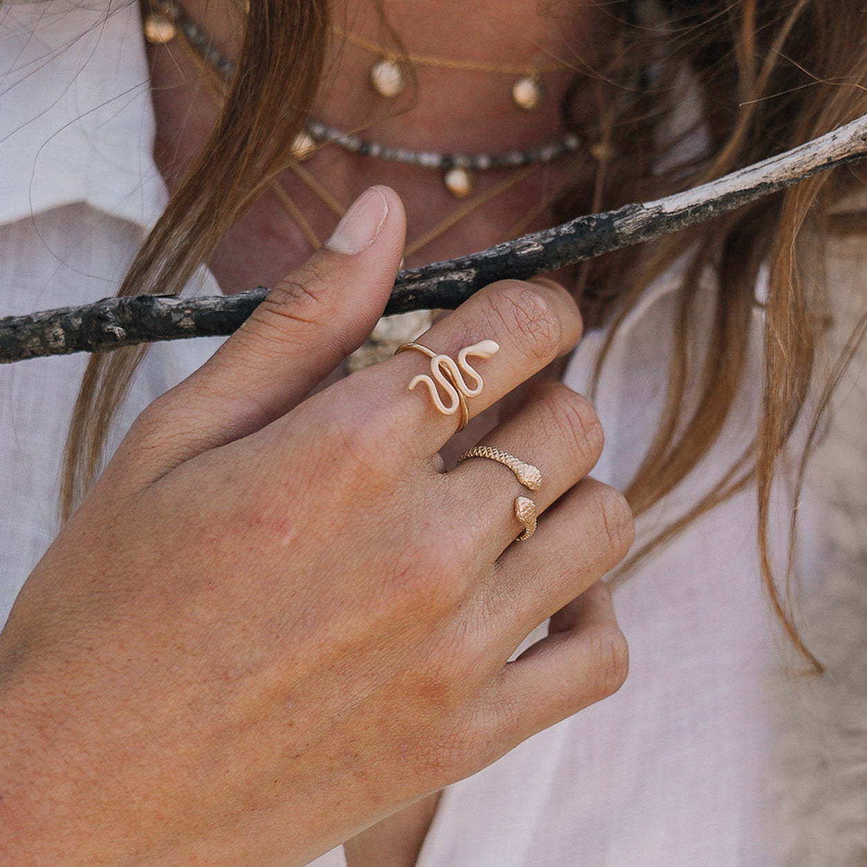 Anel ajustável em prata e banho de ouro ou ródio com serpente texturada