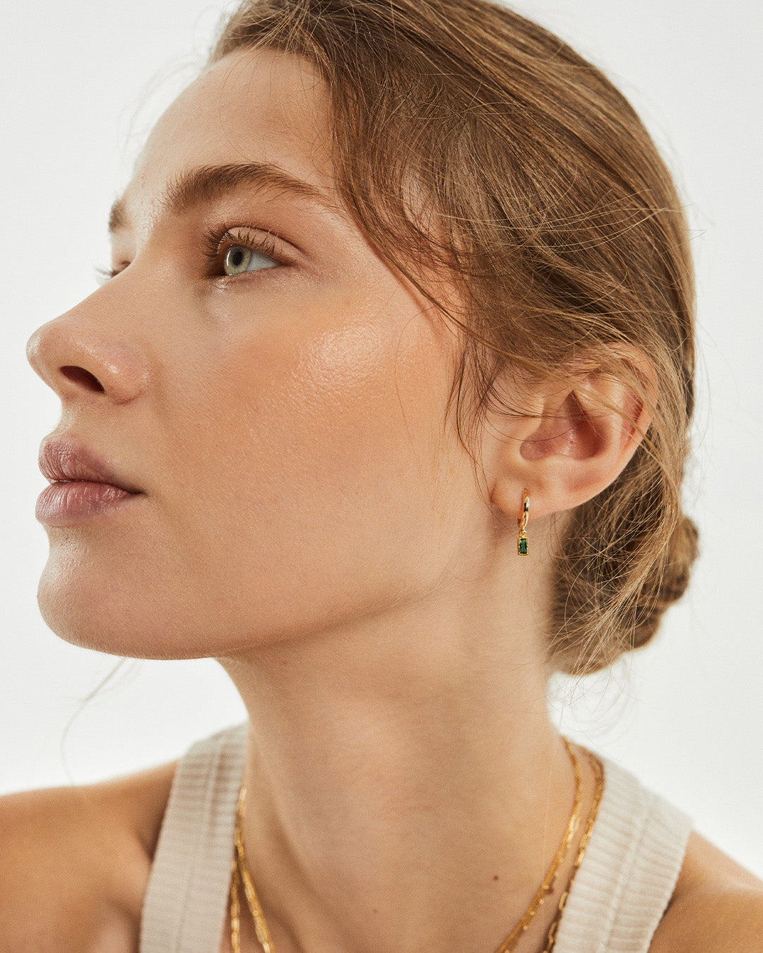 Argolas em prata 925 com banho de ouro 18K e pendentes em zircónia cúbicas