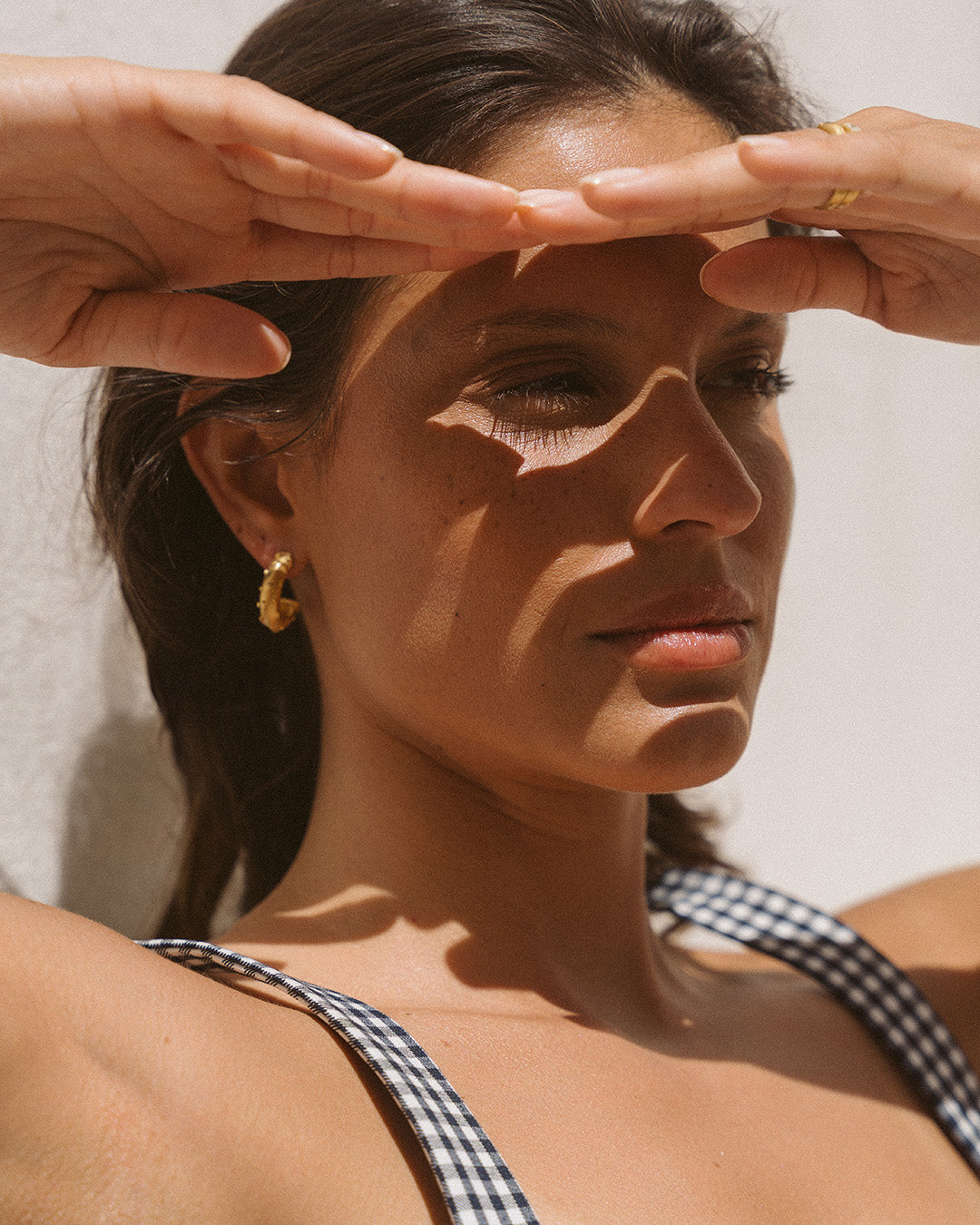 Argolas em prata 925 e banho de ouro 18K com relevos