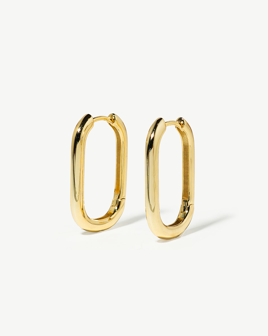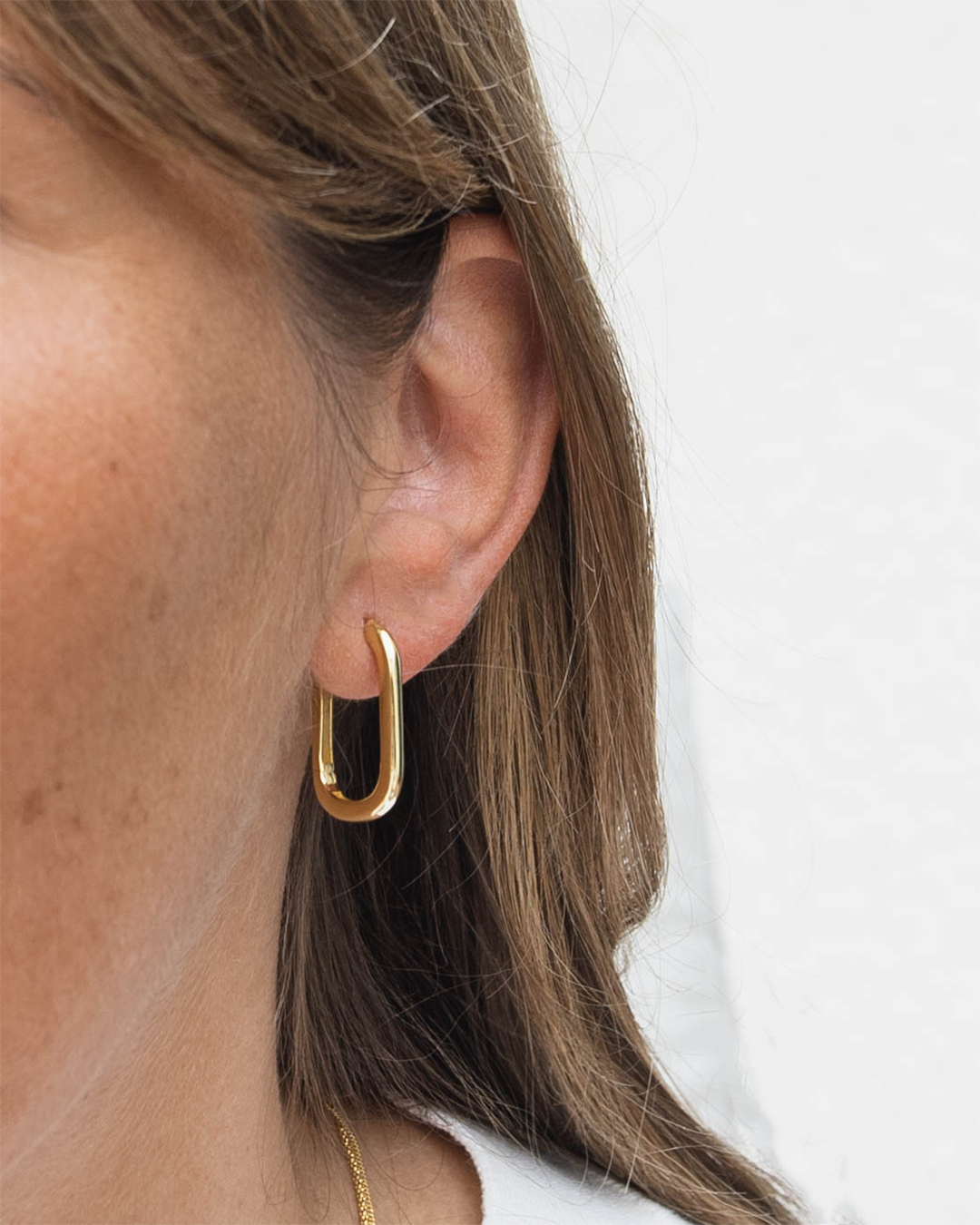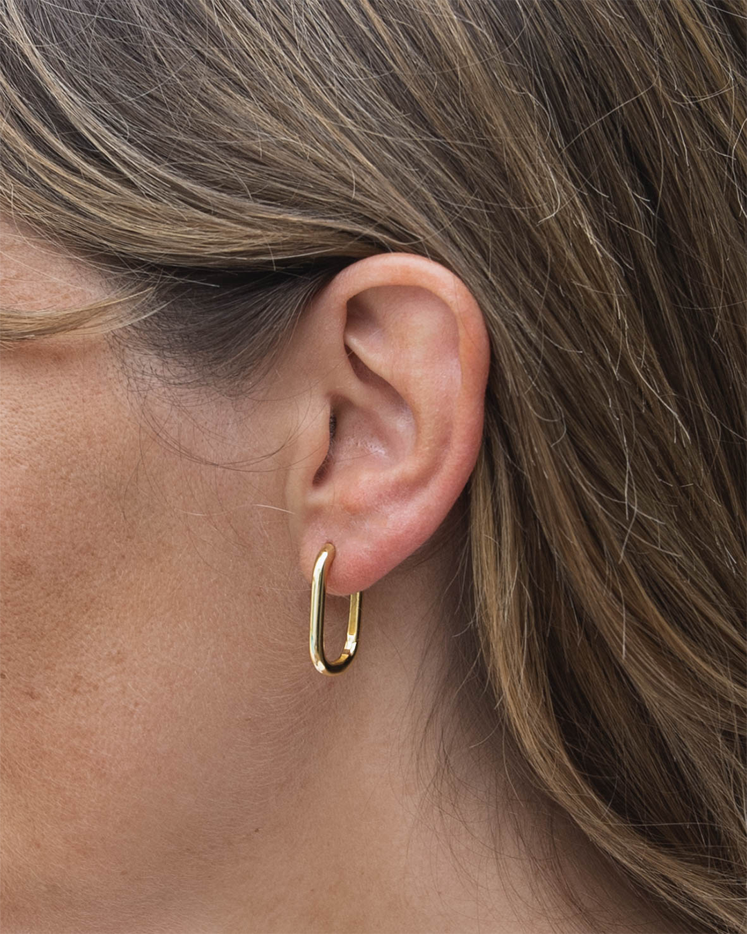 Argolas retangulares em prata 925 com banho de ouro 18K.