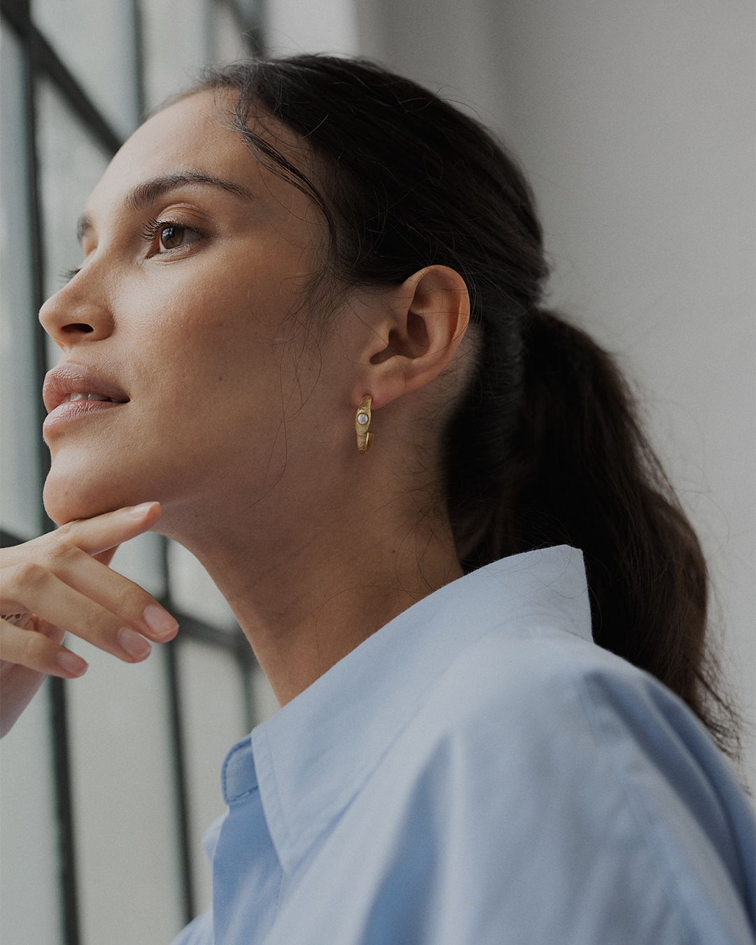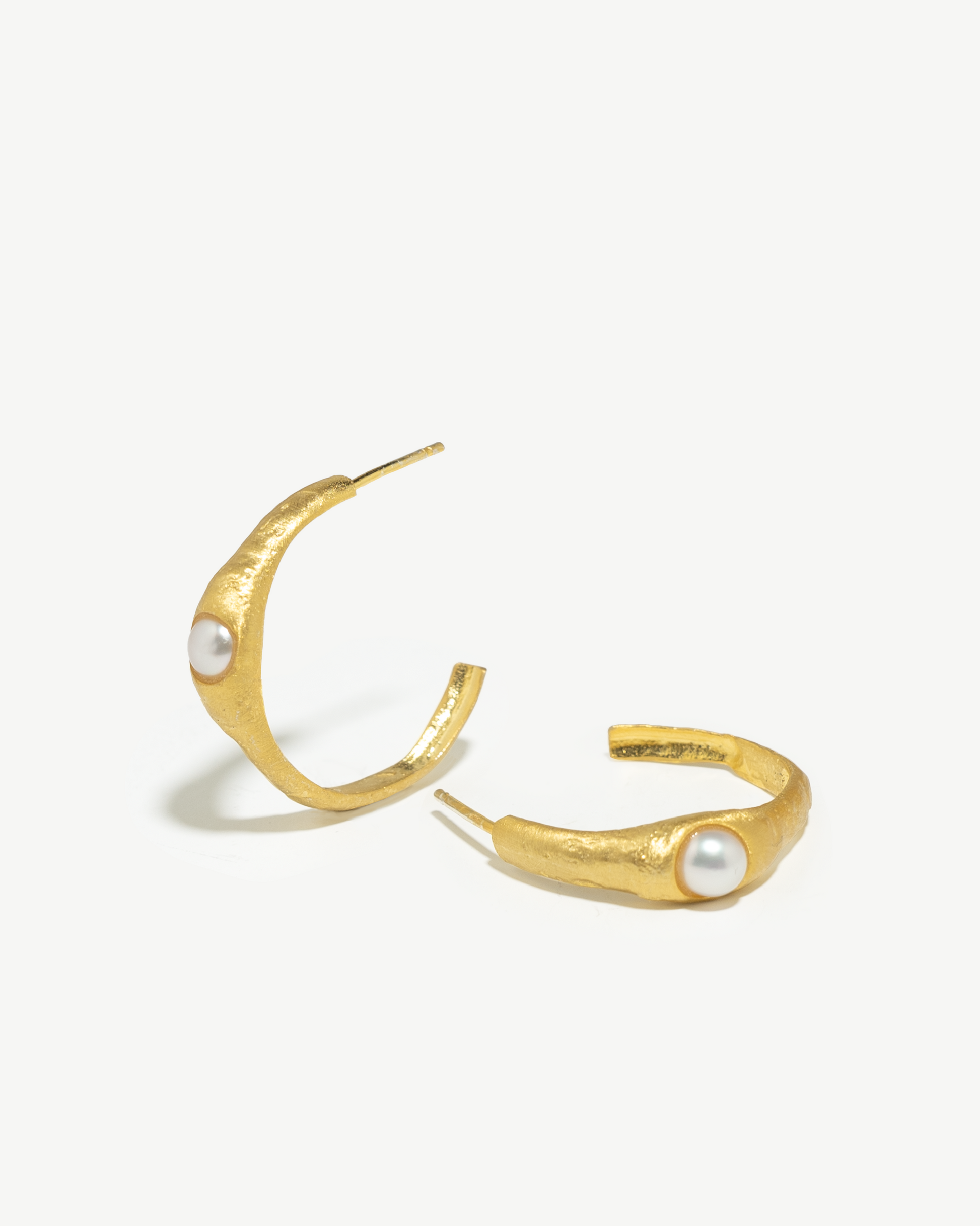 Argolas recortadas em prata 925 e banho de ouro com pérolas