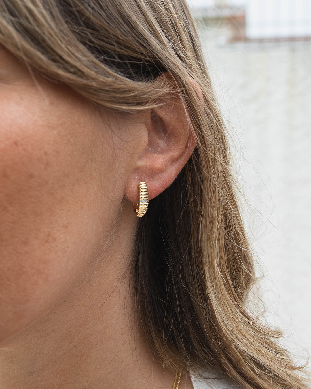Argolas em prata 925 com banho de ouro 18K e zirconia.