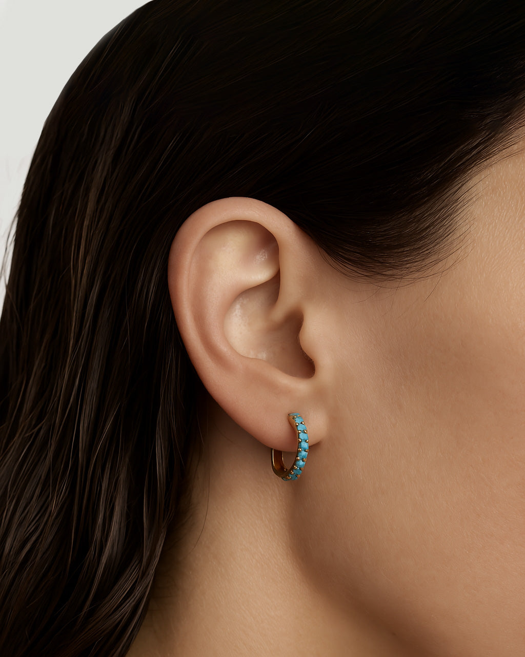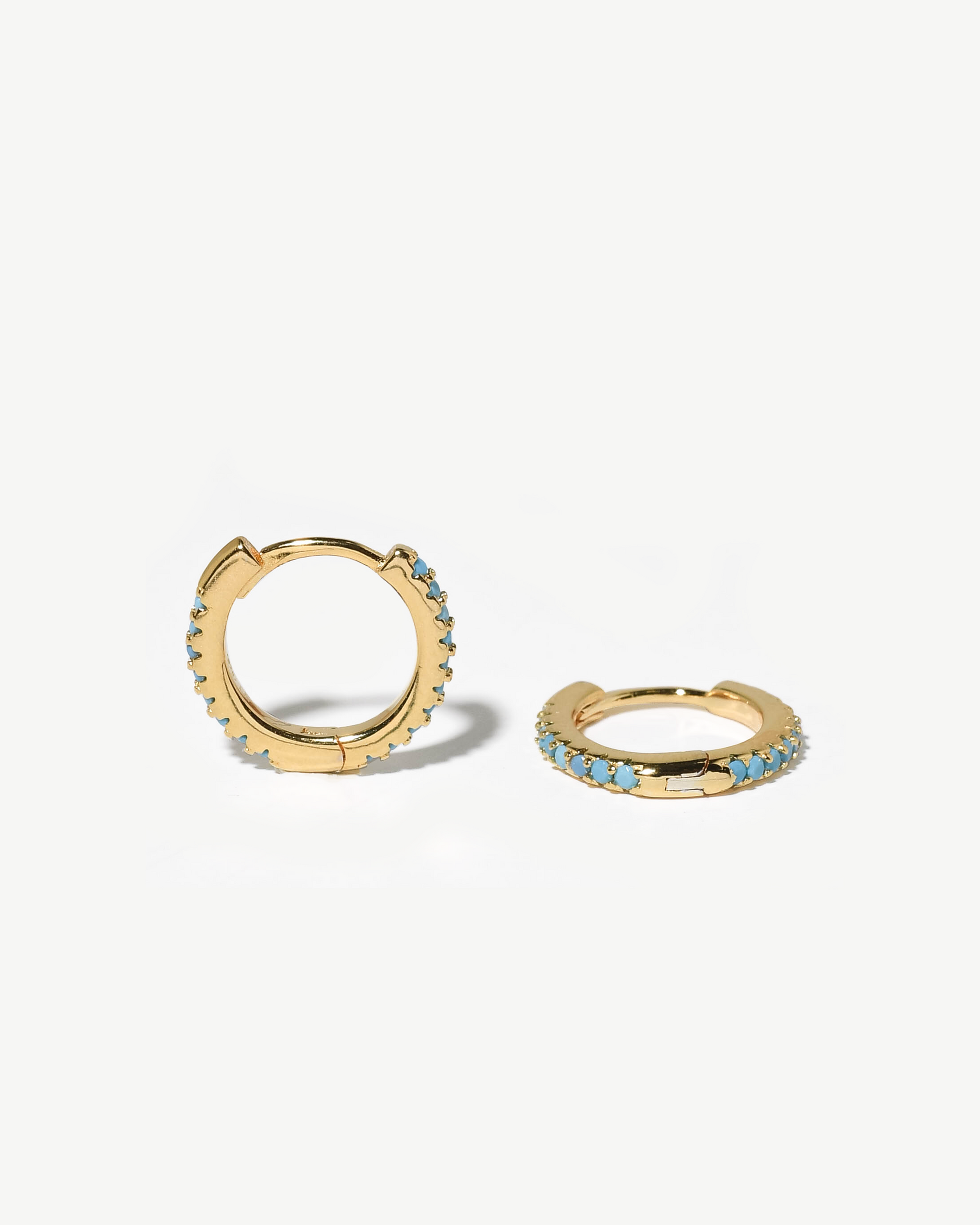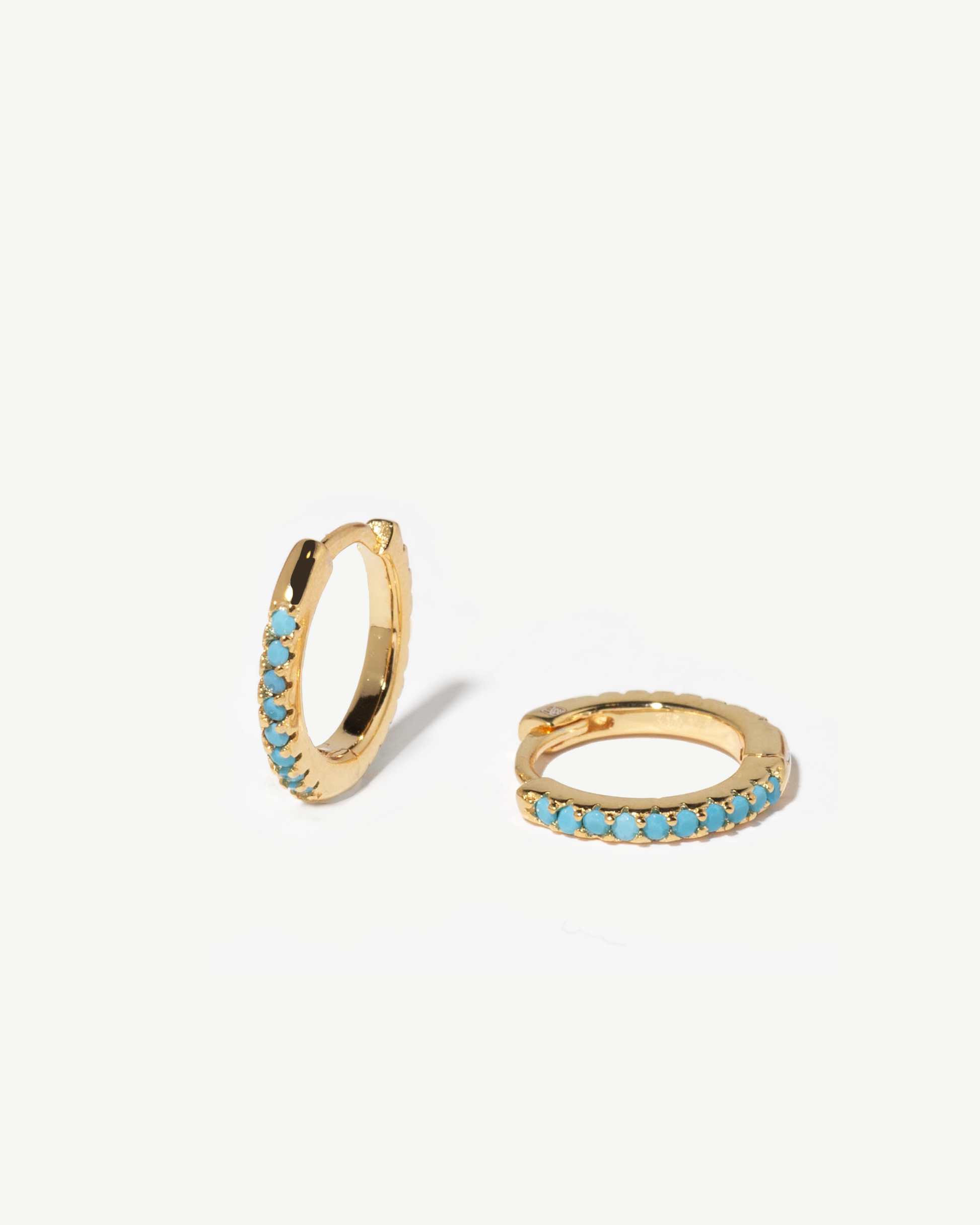 Argolas em prata 925 com banho de ouro 18K e turquesas.