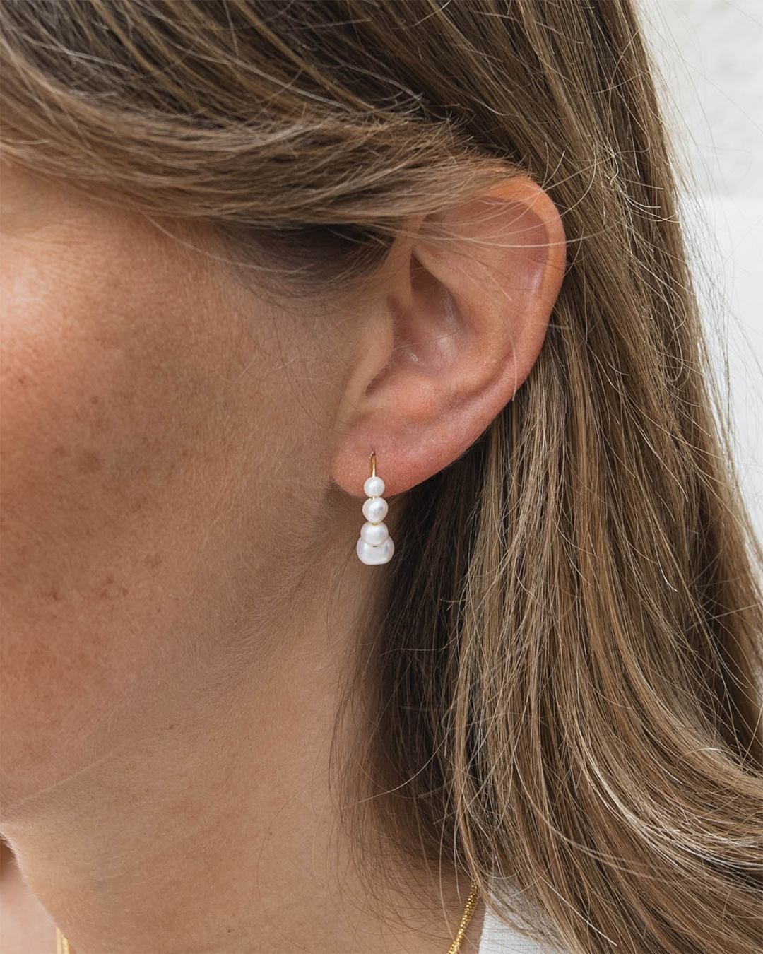 Brincos em prata 925 com banho de ouro 18K e pérolas naturais