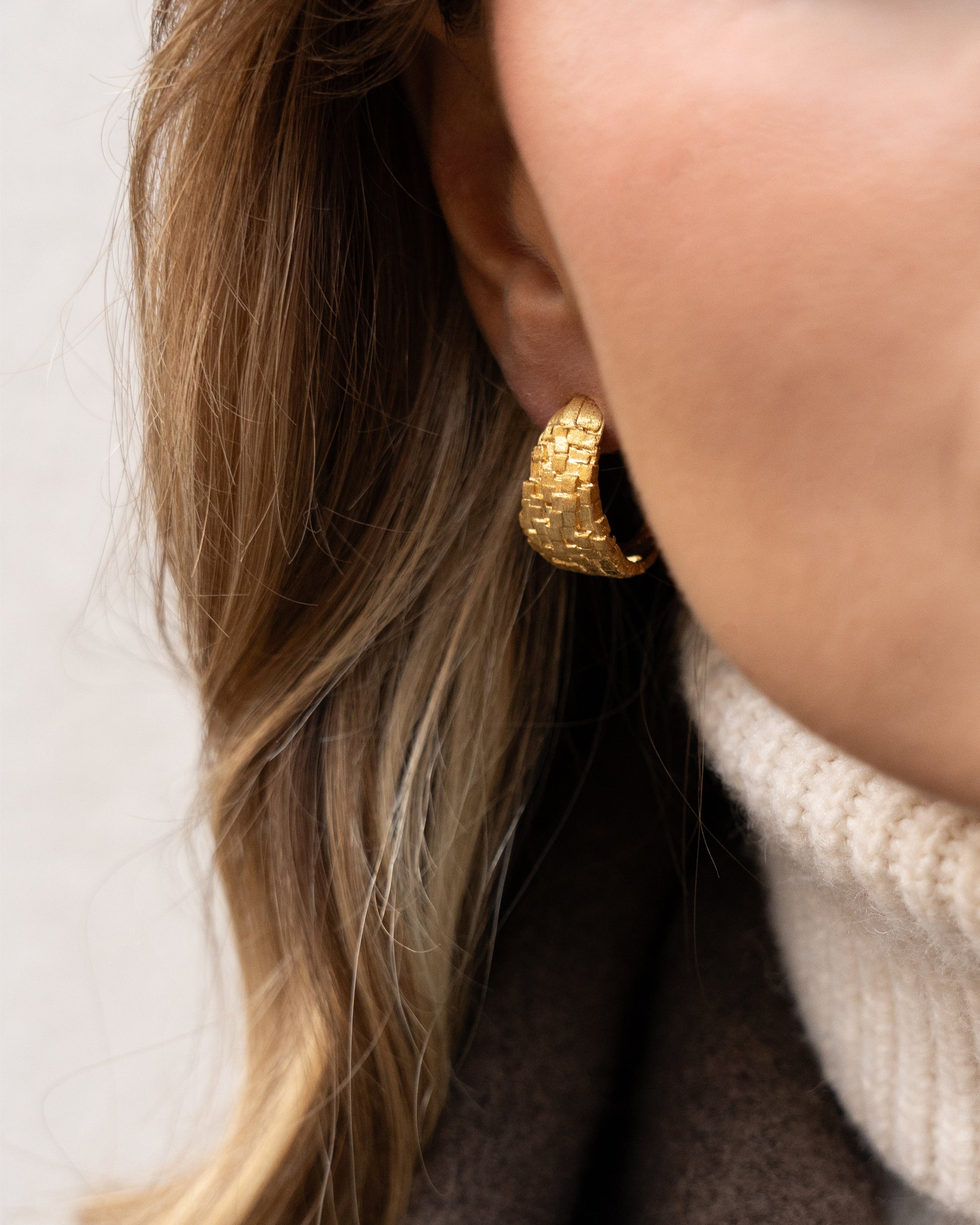 Argolas tridimensionais em prata 925 com banho de ouro 18K.