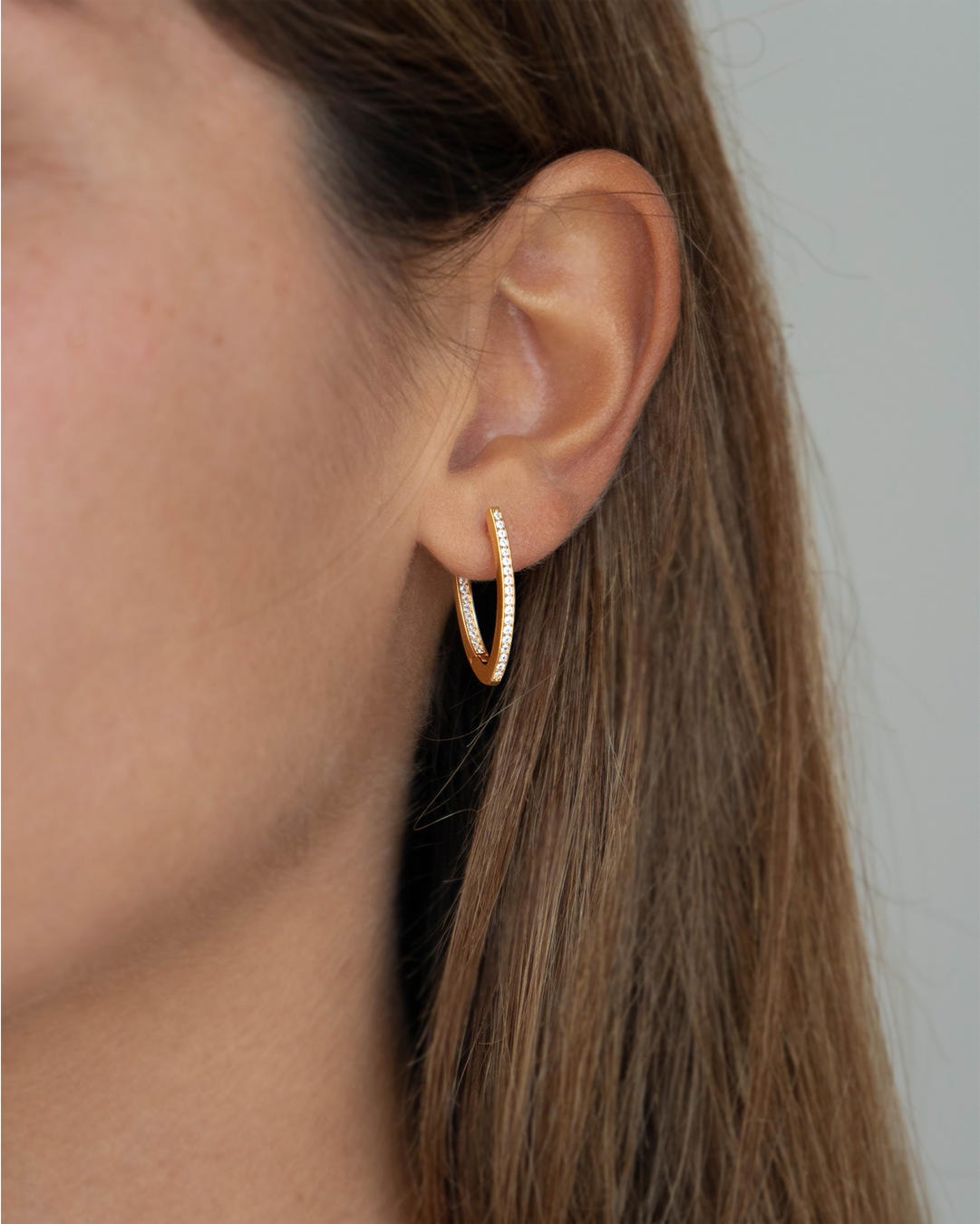 Argolas em prata 925 com banho de ouro 18K e zircónias cúbicas.