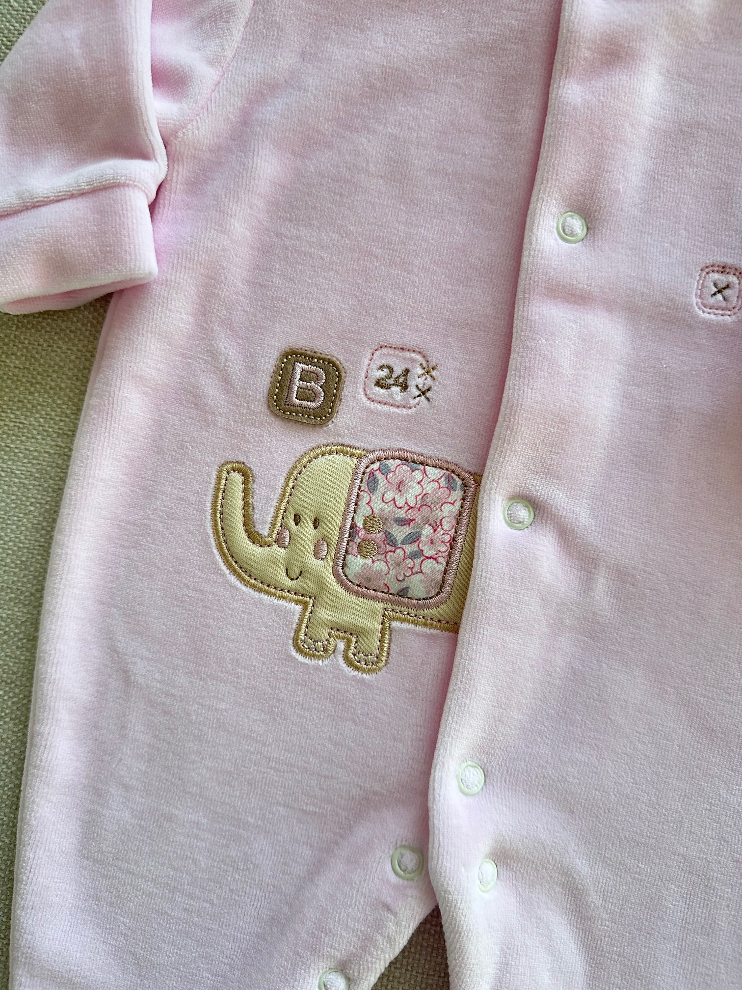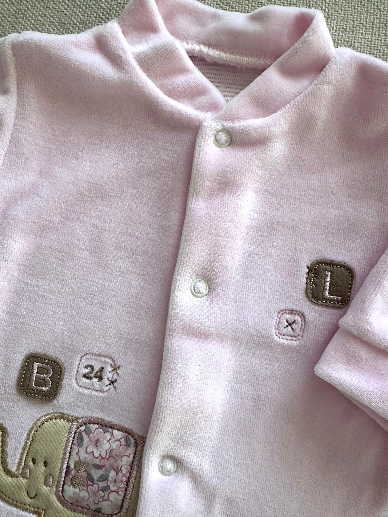 O Babygrow Little Elephant é a combinação perfeita de conforto, suavidade e estilo para o seu bebé. Feito em veludo macio com acabamento de alta qualidade, é ideal para os meses de outono e inverno, mantendo o bebé sempre quente e confortável. O seu design adorável e delicado em rosa bebé torna-o uma excelente opção tanto para o dia a dia como para oferecer como presente especial.