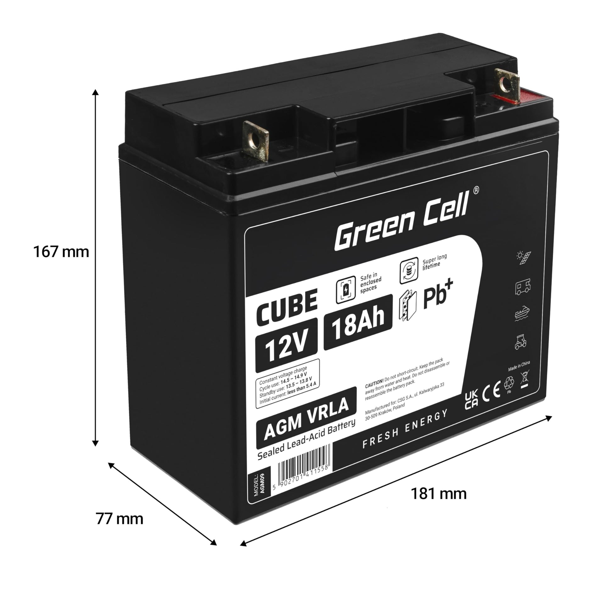 A Bateria de Chumbo Gel Green Cell AGM09 12V 18Ah oferece energia estável e duradoura para uma ampla gama de aplicações, desde UPS e sistemas solares até alarmes, equipamentos médicos e veículos elétricos ligeiros. Com tecnologia AGM VRLA, garante segurança, fiabilidade e baixa manutenção, sendo ideal para quem procura uma fonte de energia eficiente e de longa vida útil.