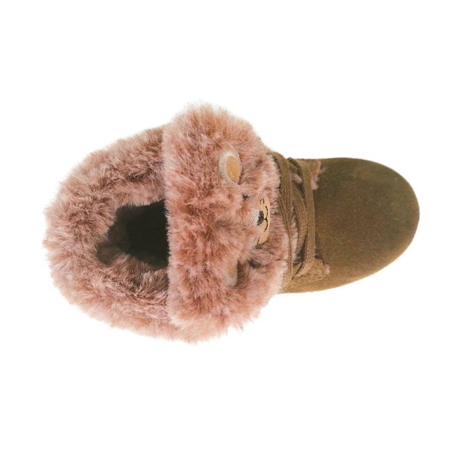 São irresistíveis estas botas, Feitas em pele camurça, com pelo super fofinho na parte superior e um animal bordado. No interior também vem com pelo e uma palmilha interior para um conforto inigualável. A sola é antiderrapante e com um cheirinho tão bom, as crianças adoram.