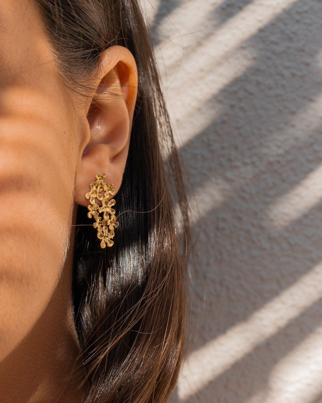 Brincos em prata e banho de ouro ou ródio com elemento floral