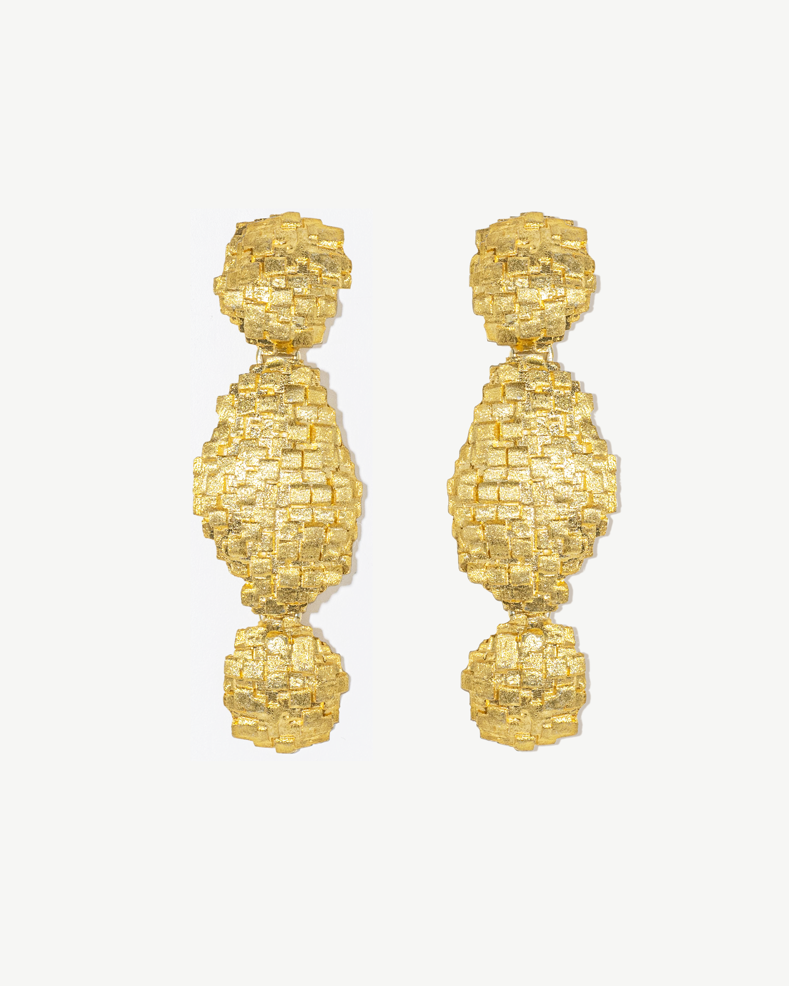Brincos tridimensionais em prata 925 com banho de ouro 18K.