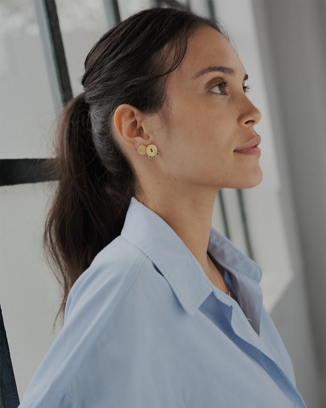 Brincos em prata 925 e banho de ouro com zircónias cúbicas.