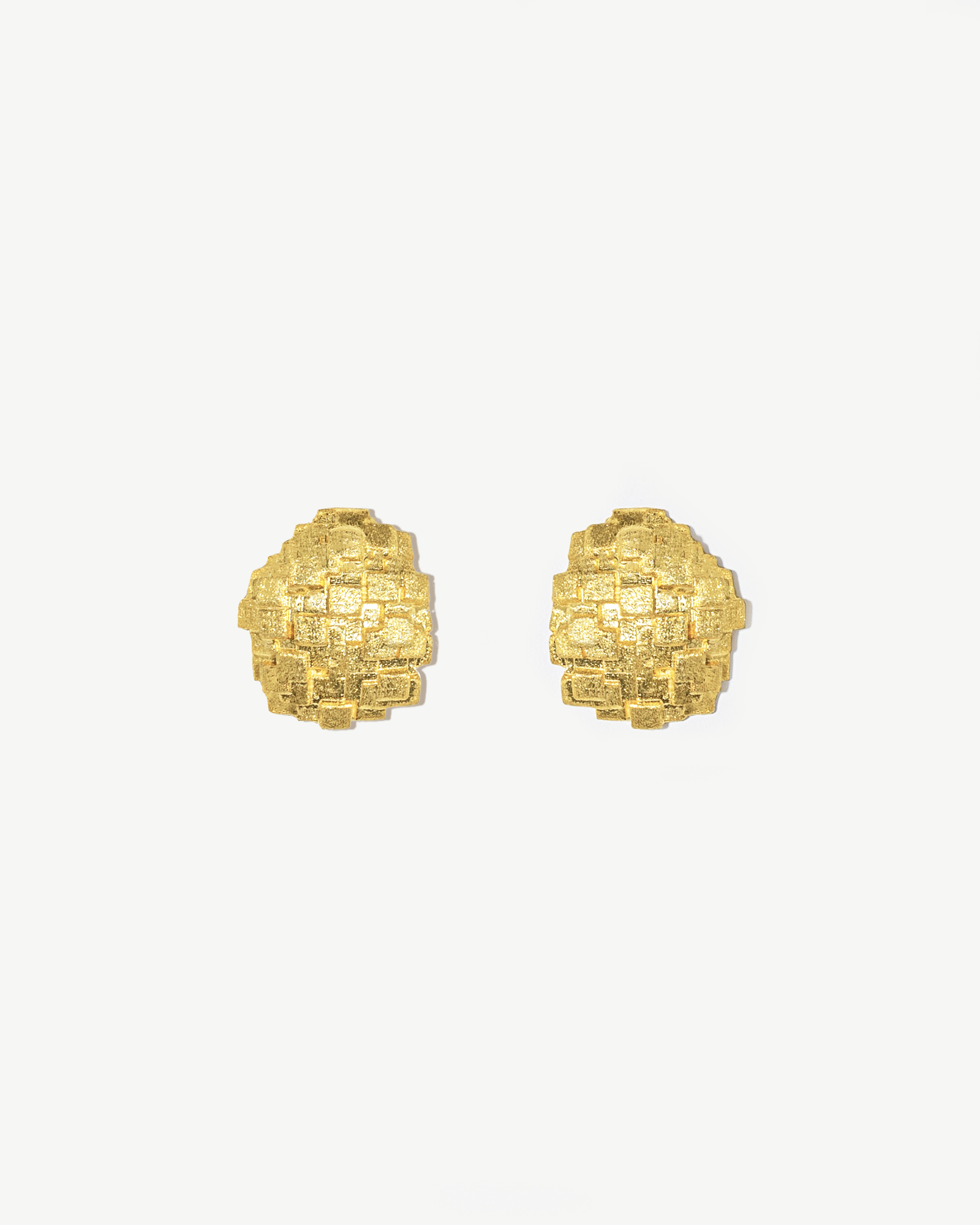 Brincos tridimensionais em prata 925 com banho de ouro 18K.