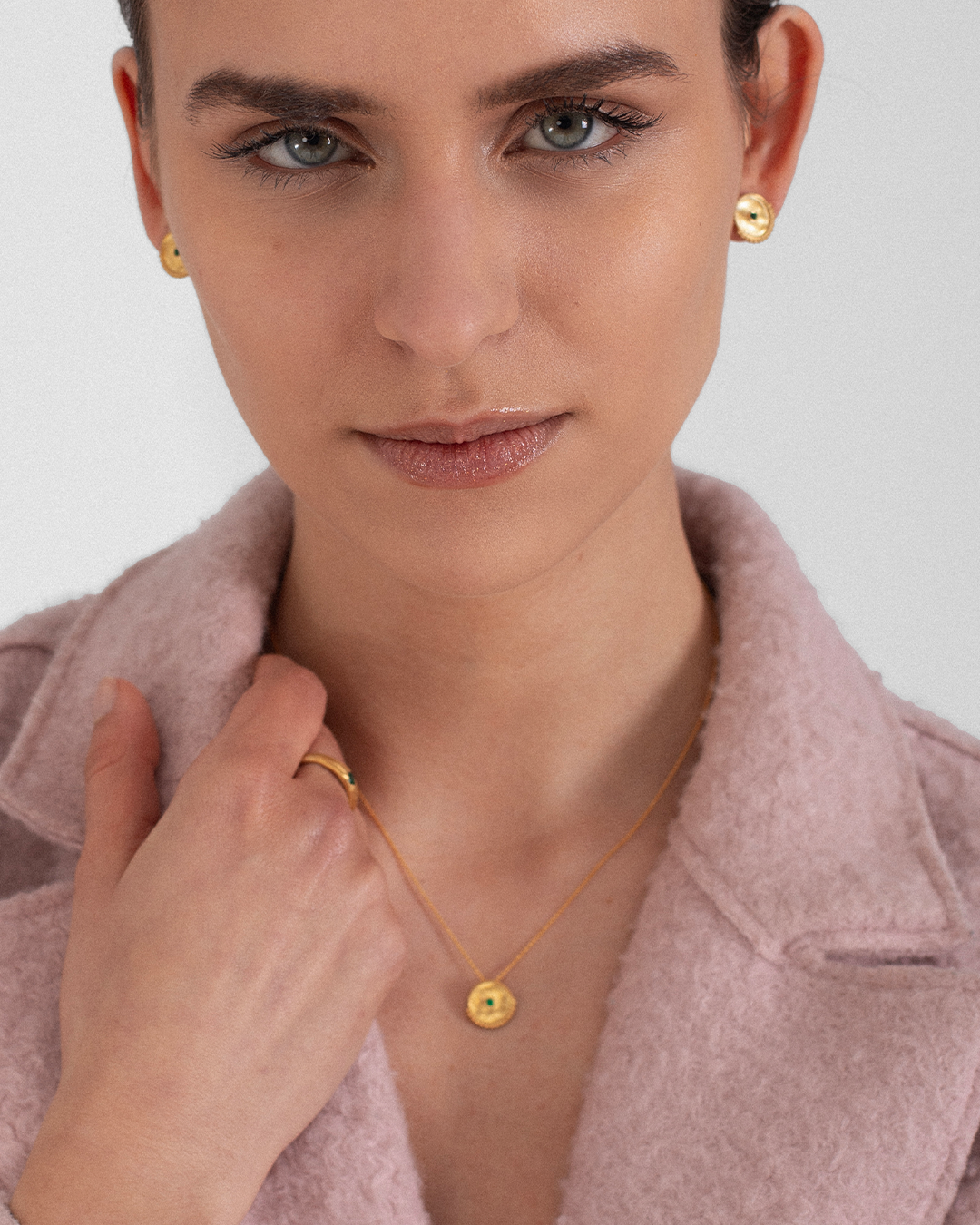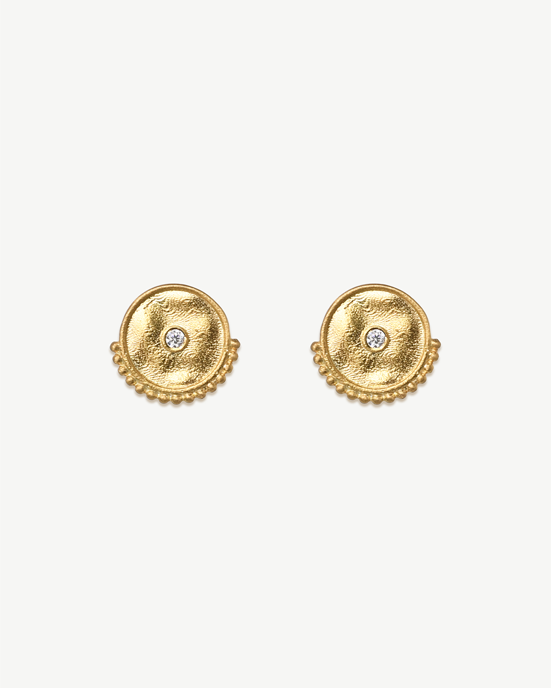 Brincos em prata 925 e banho de ouro 18K com pendentes redondos com relevo e zircónias cúbicas coloridas