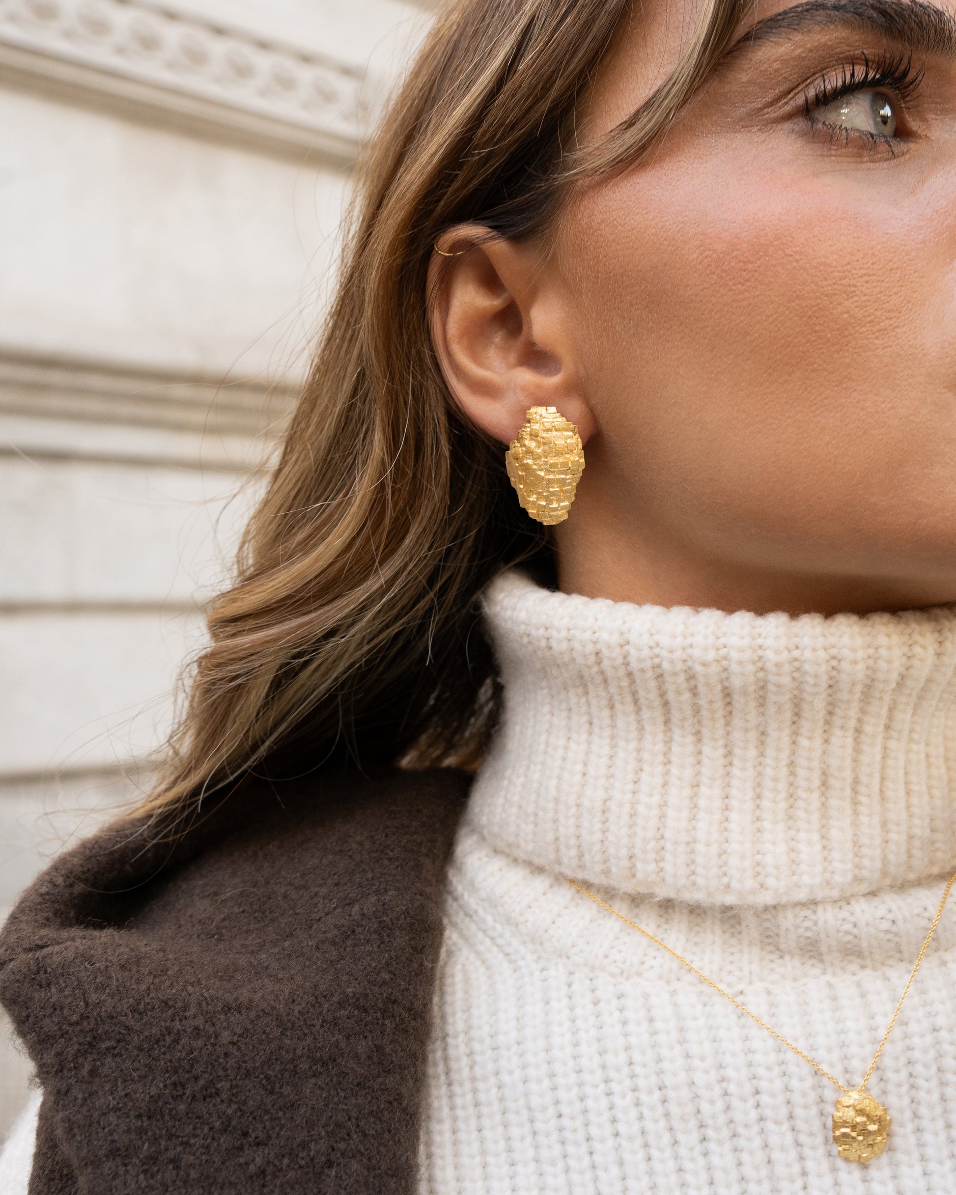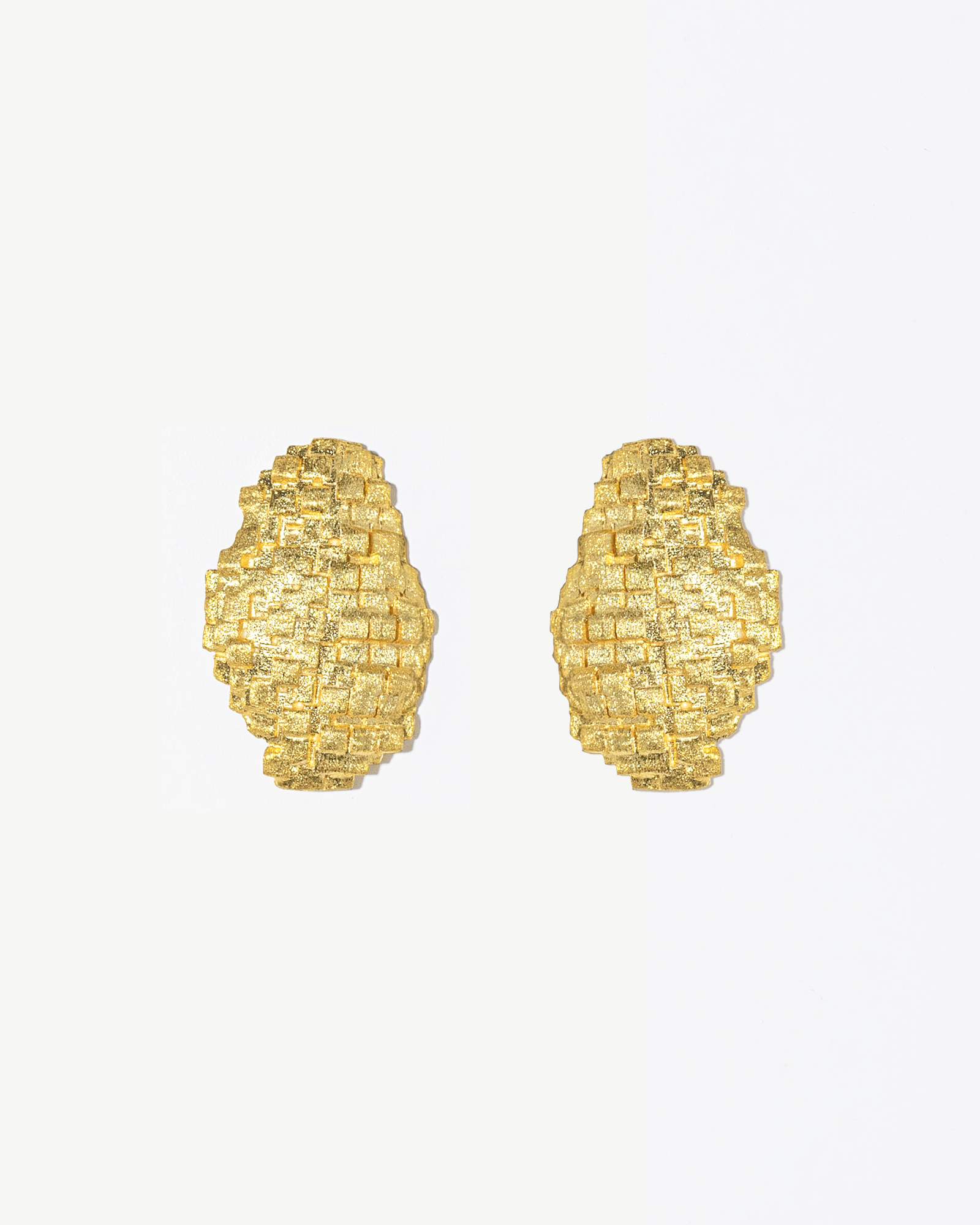 Brincos tridimensionais em prata 925 com banho de ouro 18K.