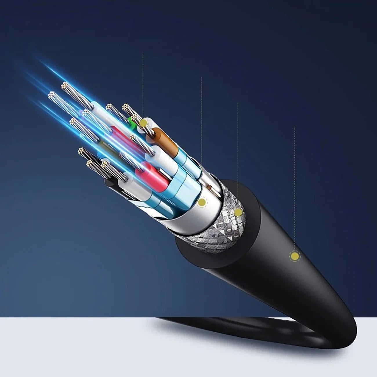 Com 1 metro de comprimento, este cabo proporciona praticidade em setups de secretária, evitando excesso de cabos enquanto assegura uma ligação estável e fiável. A sua construção robusta, com conectores banhados a ouro, oferece maior durabilidade e excelente condutividade.