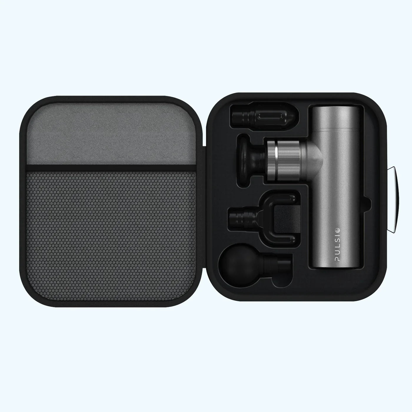 O estojo possui um embutido personalizado para armazenar seu ar Pulsio, 4 cabeças de fixação e um bolso de malha para acessórios. Mantenha -se ativo e desfrute da terapia percussiva onde quer que a vida o leve.