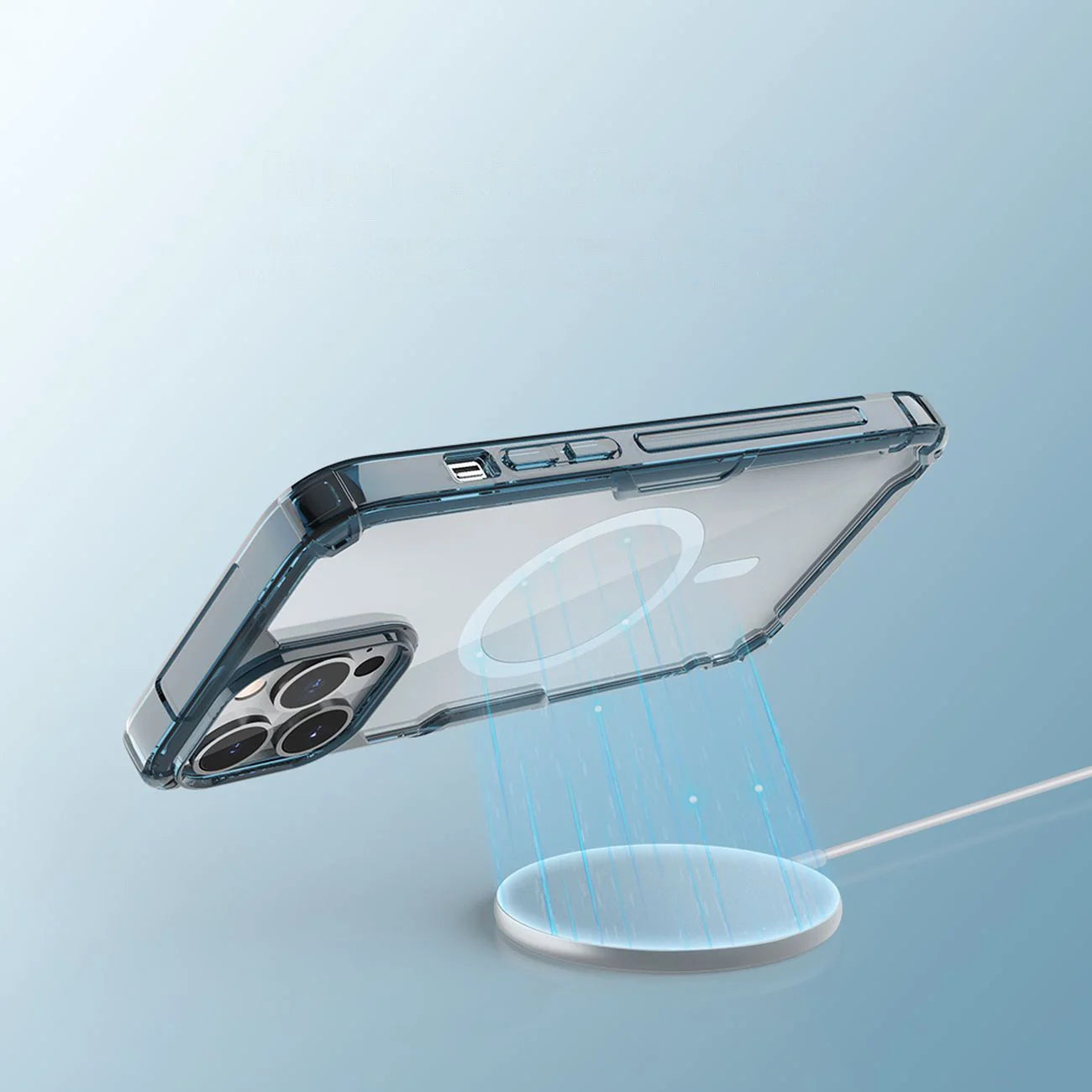A Capa NILLKIN Nature Pro Armoured com MagSafe para iPhone 15 Pro Max alia design transparente, compatibilidade magnética e proteção reforçada. É a escolha ideal para quem procura segurança extra sem comprometer a elegância do iPhone.