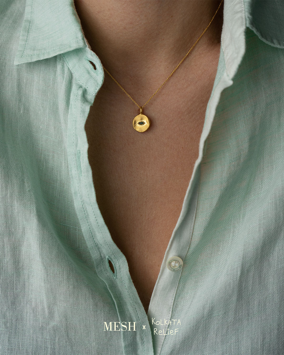 Colar em prata 925 e banho de ouro 18K com pendente redondo irregular e zircónia cúbica colorida