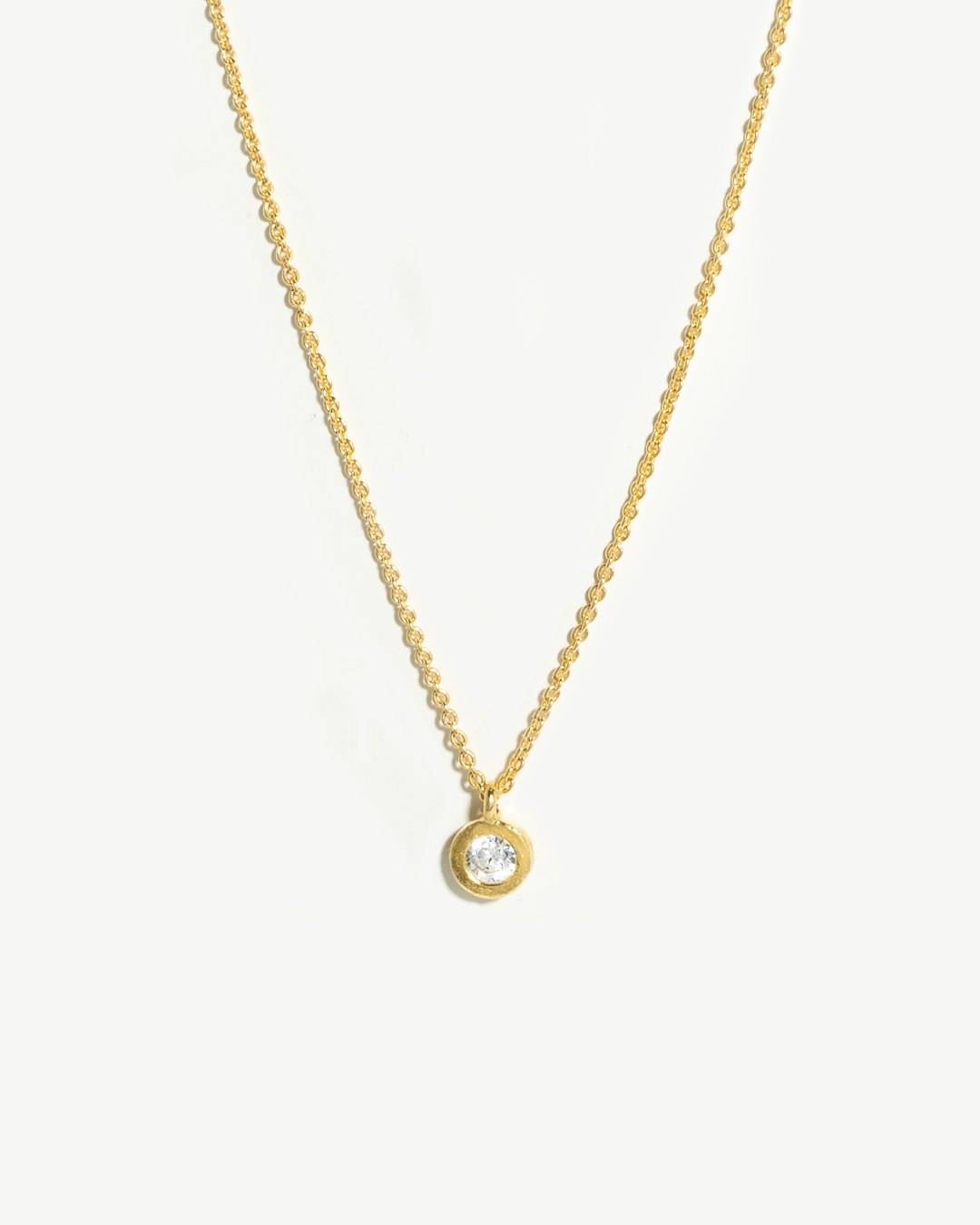 Colar em prata com banho de ouro ou ródio e pendente redondo com zircónia cúbica