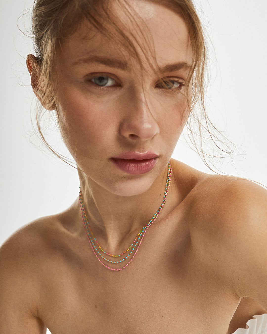 Colar de esferas em esmalte colorido.