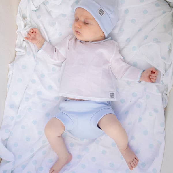 Conjunto composto por 3 peças. Fabricado em 100% algodão, ideal para a pele delicada da criança. Vestido desenhado para os primeiros dias de vida do bebé. Tem um design simples que proporciona um toque refinado.
