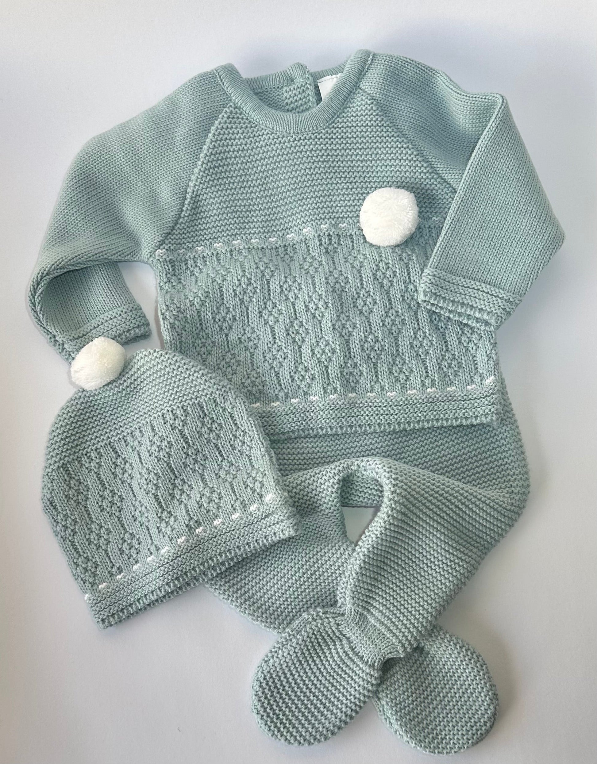 Conjunto de Bebé em Malha Verde Menta 3 Peças 100% Algodão