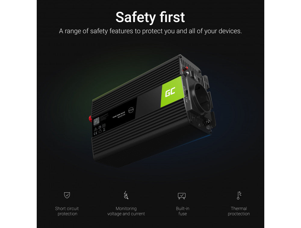 O Conversor Inversor de Tensão Green Cell 12V 230V 300W/600W combina eficiência, portabilidade e segurança. É perfeito para quem procura energia confiável em movimento, seja em viagens de carro, campismo, caravanas ou sistemas solares portáteis.