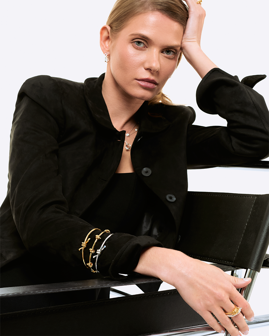 Escrava com detalhe de nó feita à mão em prata 925 com banho de ouro 18K.