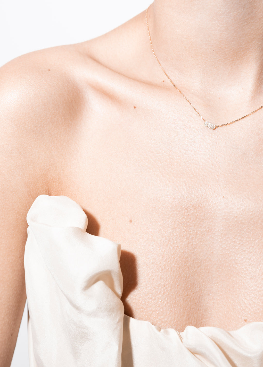 hannah is a playful aesthetic into fine jewelry in a 18k necklace with 19 round cut diamonds