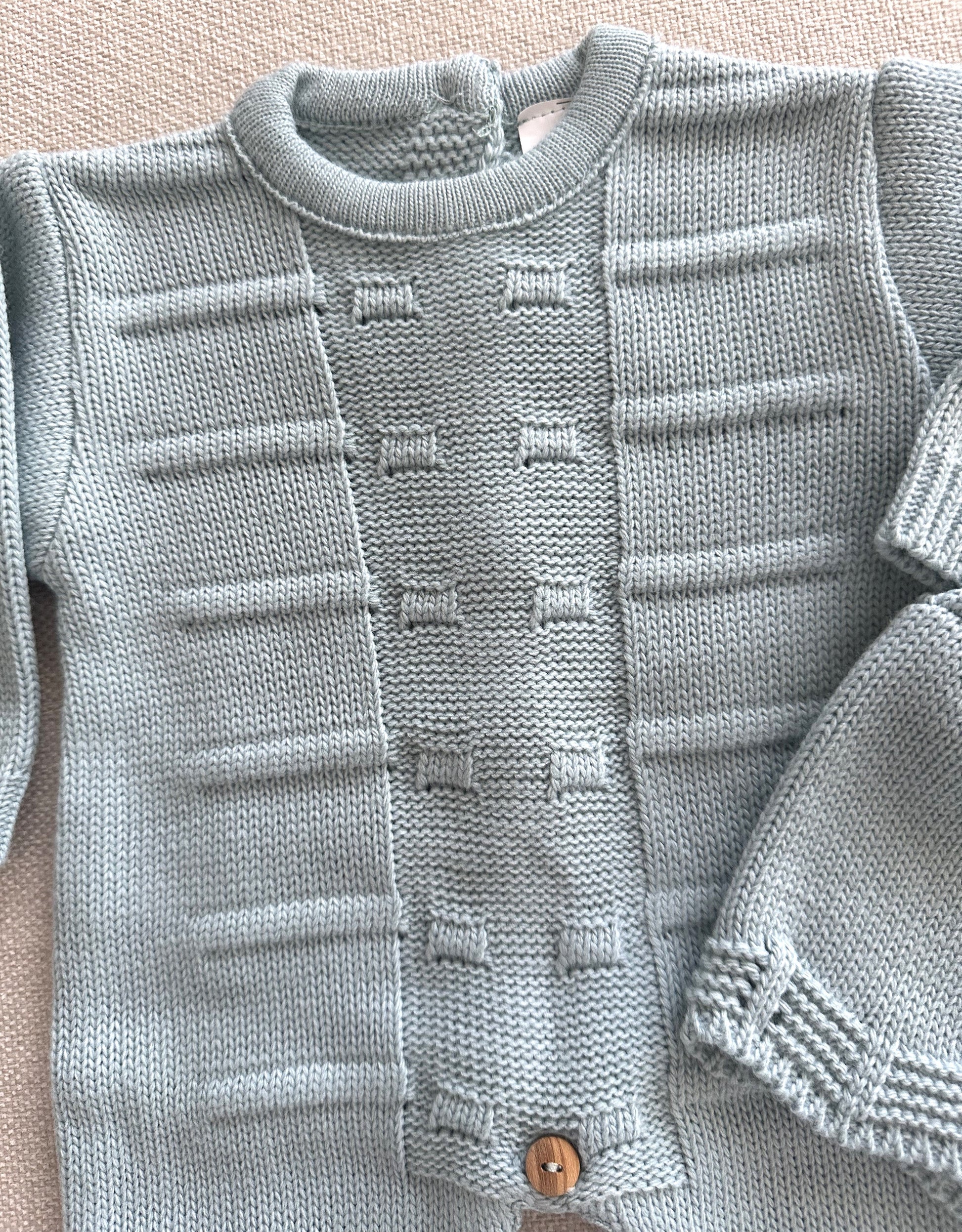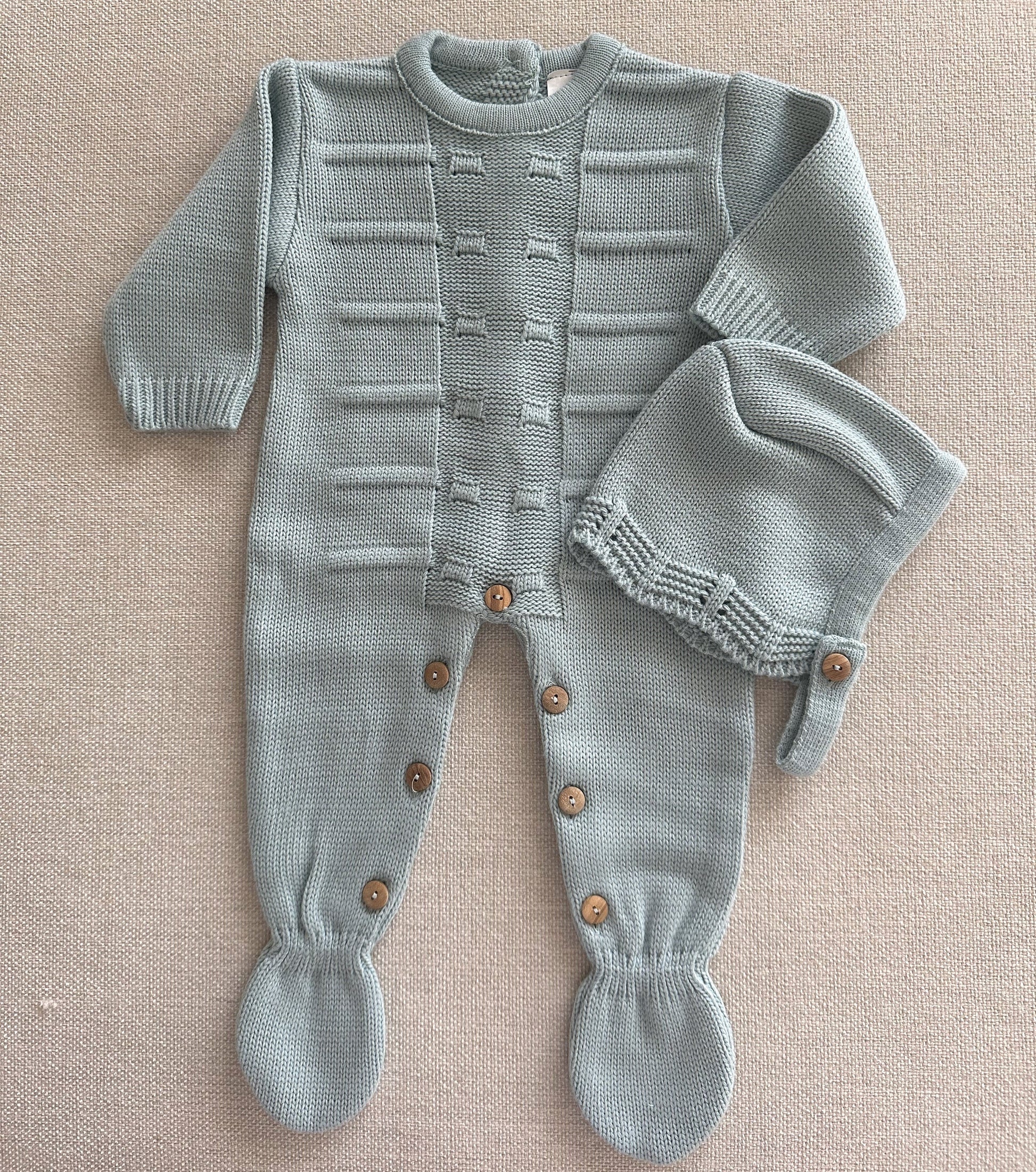 Este macacão em malha de 2 peças para bebé é a escolha ideal para proporcionar conforto, suavidade e proteção ao seu pequeno nos dias mais frescos. Produzido em malha de alta qualidade, inclui um macacão de manga comprida com botões entrepernas, e um gorro a condizer. O design clássico e intemporal torna-o perfeito tanto para o uso diário como para ocasiões especiais, sendo também uma excelente opção para presente.