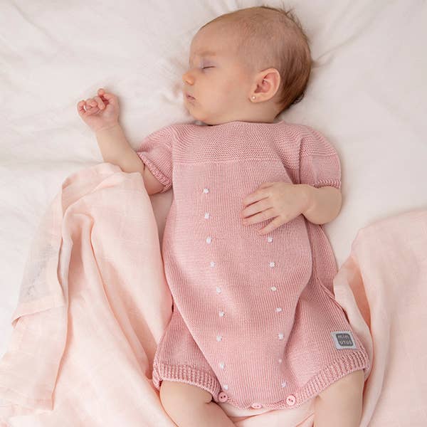 O macacão é ideal para quando um bebé tem alguns dias de idade, feito com 100% pérola acrílica, muito fresco e ideal para o verão. Tem um design doce e encantador, ideal para realçar a ternura dos primeiros dias de vida. Detalhes cuidadosamente selecionados para adicionar um toque de elegância à inocência da infância. Não é apenas uma peça funcional, mas também um presente encantador para celebrar a chegada de um novo membro à família. Envolva o seu bebé em amor e conforto desde o início com este cachecol desenhado com dedicação e cuidado.