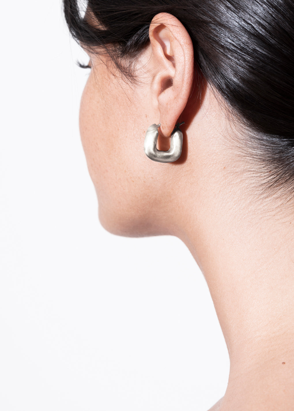 the magda huggies are the perfect hoops. rectangular, bubbly and brushed, they came to conquer your heart as they did ours!