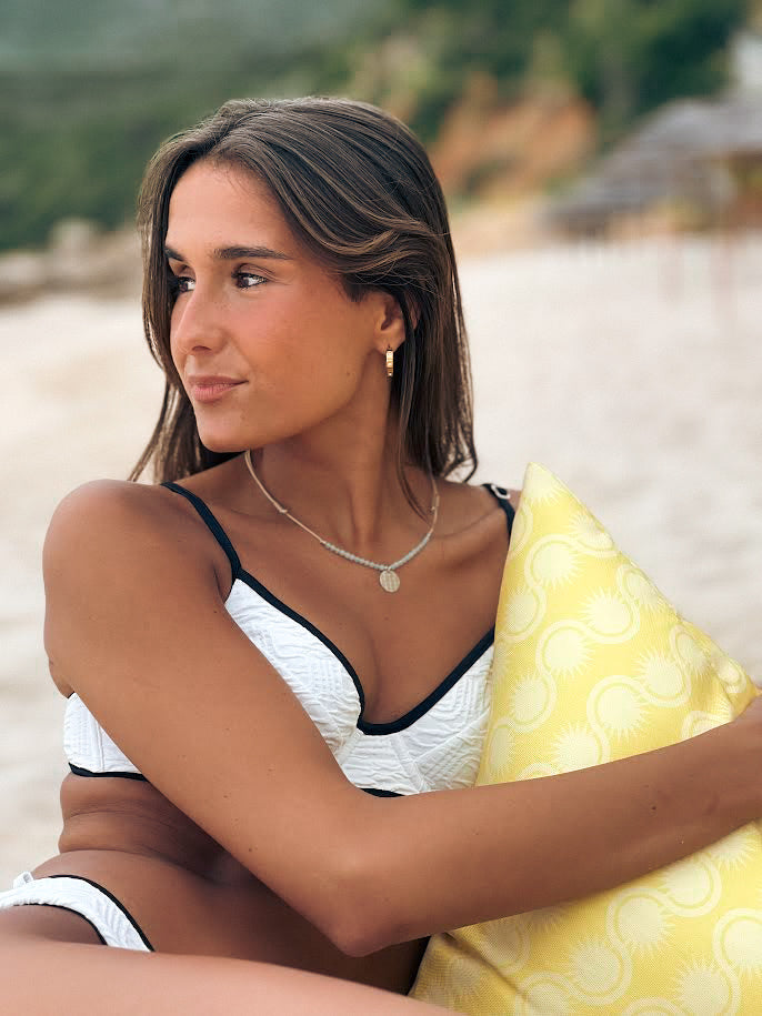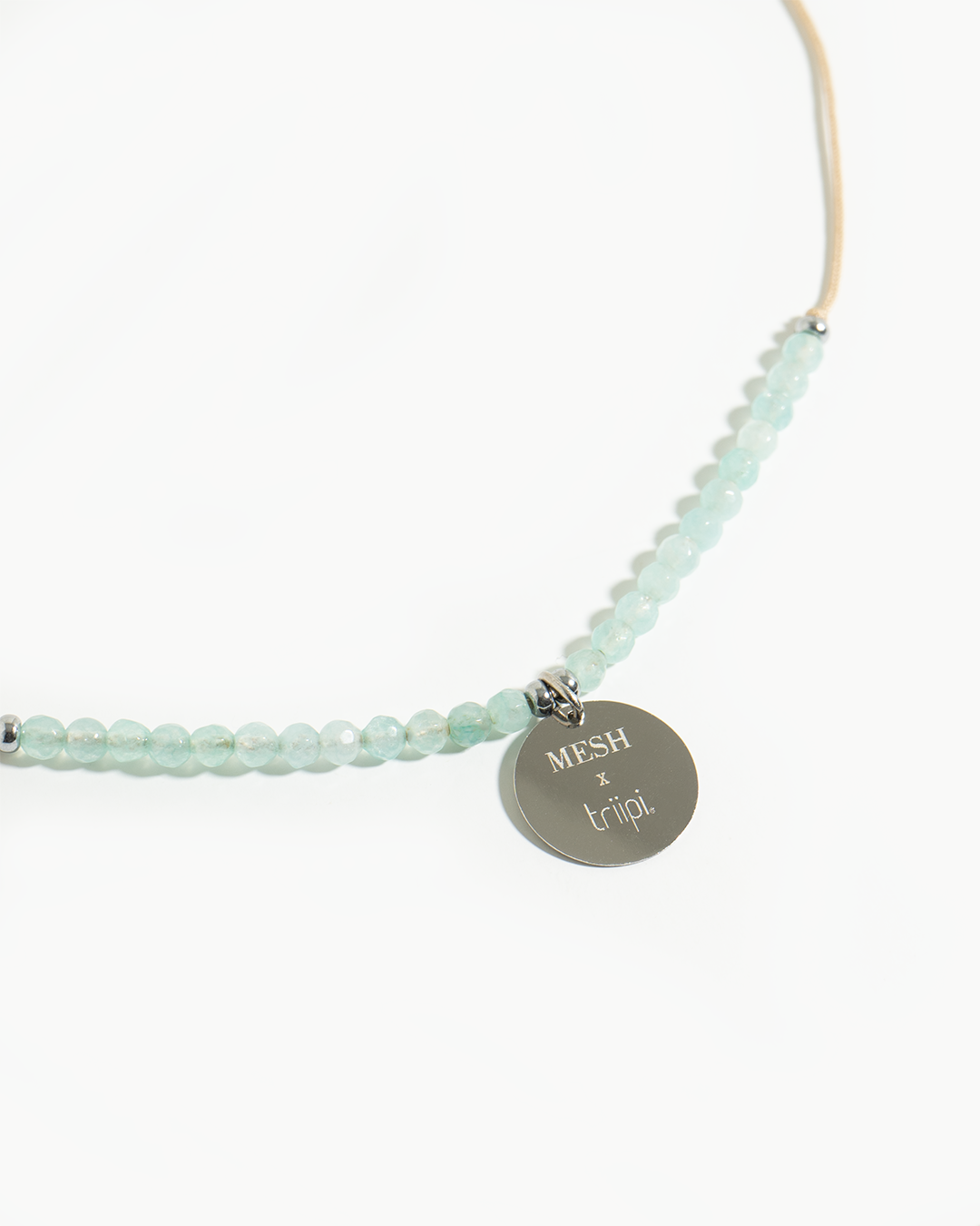 Colar em corda de algodão com pedras hidrotermais e pendente em prata 925 com banho de ródio.