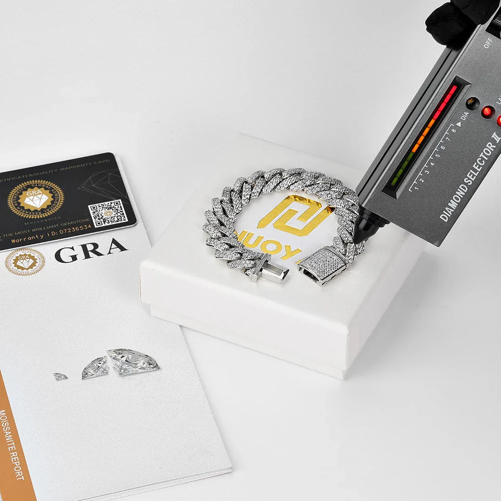 Miami Cuban Link Bracelet – Luxury 925 Silver Pulseira Masculina com Pedras VVS Moissanite | GRA Certified Iced-Out Dripication