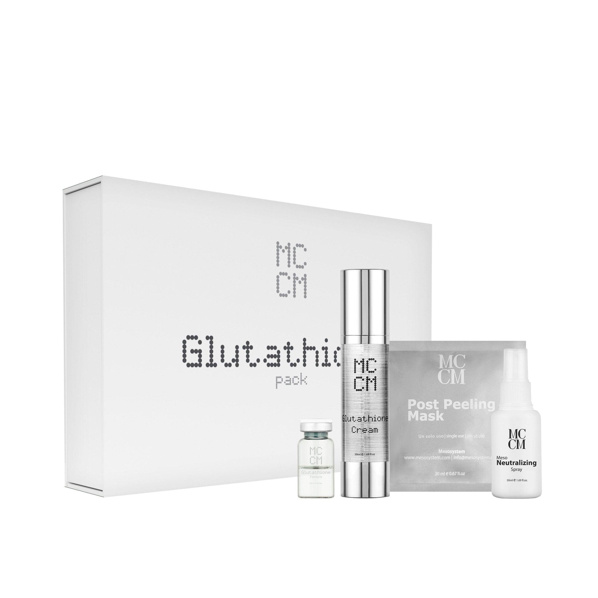 Glutathione Pack is a combination of products with ingredients that help brighten and even out skin tone.