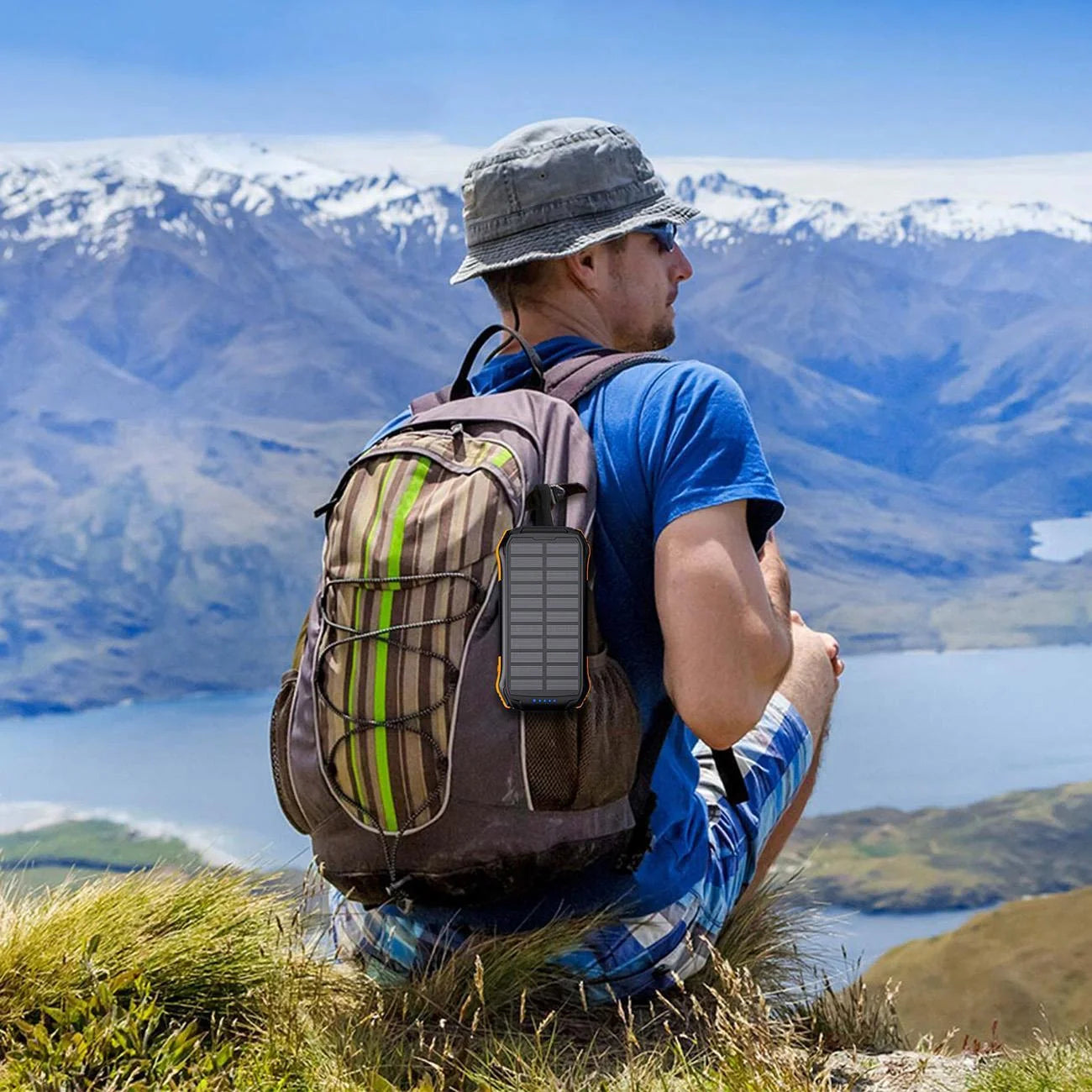 O painel solar integrado permite recarregar a bateria em ambientes exteriores, ideal para campismo, caminhadas, viagens ou emergências. Compacto e resistente, este power bank oferece conveniência e autonomia em qualquer situação.