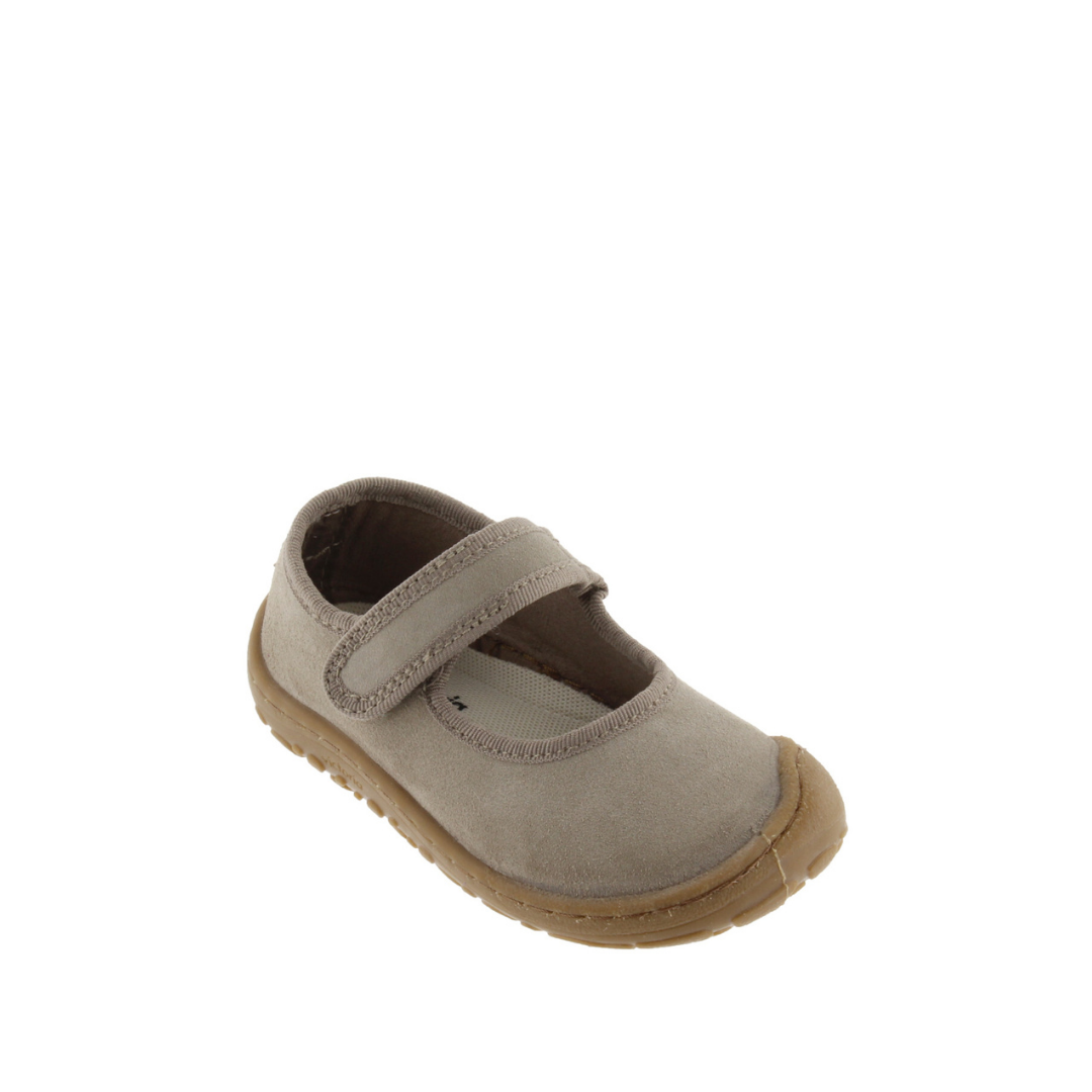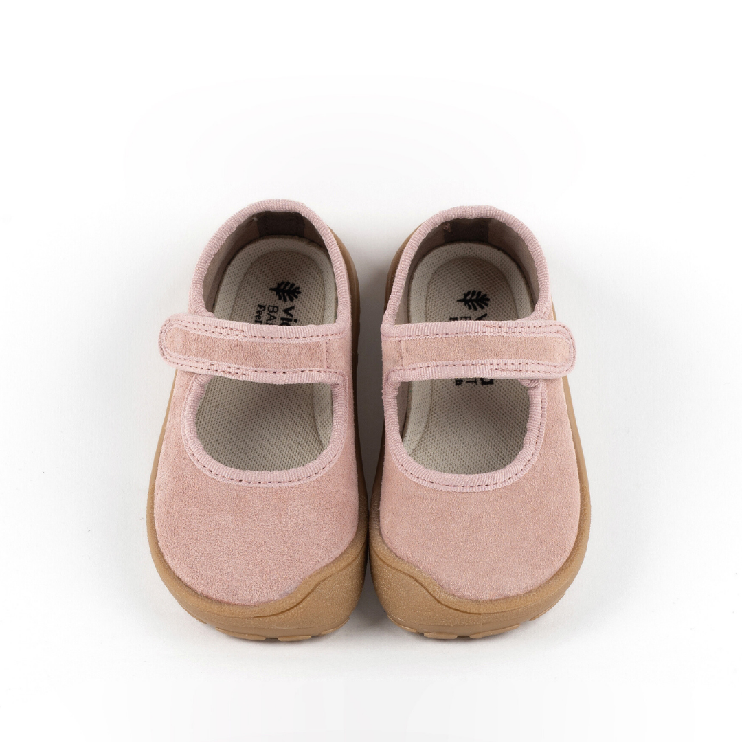 Estas sabrinas barefoot Victoria combinam um visual delicado com a funcionalidade que os pezinhos precisam. A camurça macia e o debrum tom sobre tom tornam-nas ainda mais elegantes e fáceis de combinar. O fecho com tira aderente facilita o calçar e garante maior fixação no ajuste.