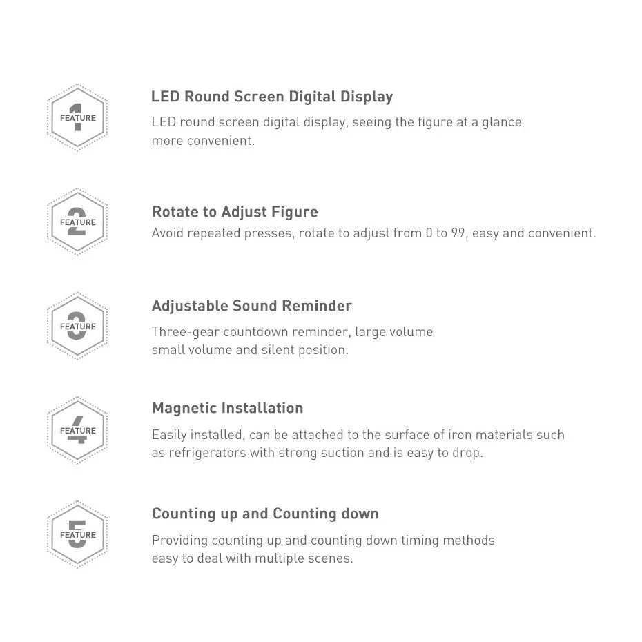 O Temporizador Digital Baseus Heyo ACDJS-01 é a ferramenta perfeita para controlar o tempo em múltiplas atividades do dia a dia. Compacto e moderno, possui um display LED de alta visibilidade e operação simples através de botões táteis, garantindo praticidade e precisão.
